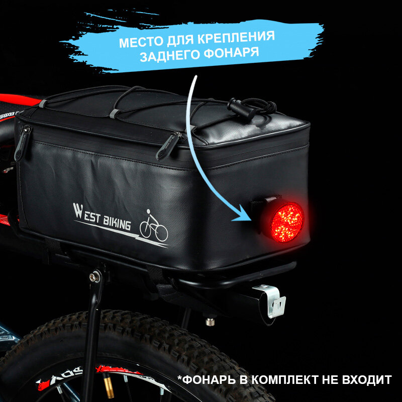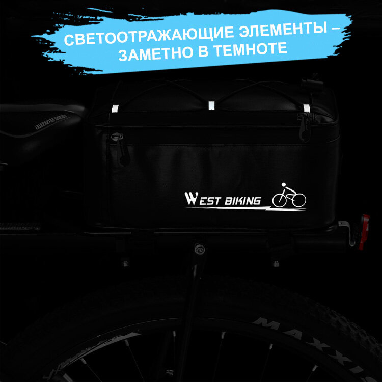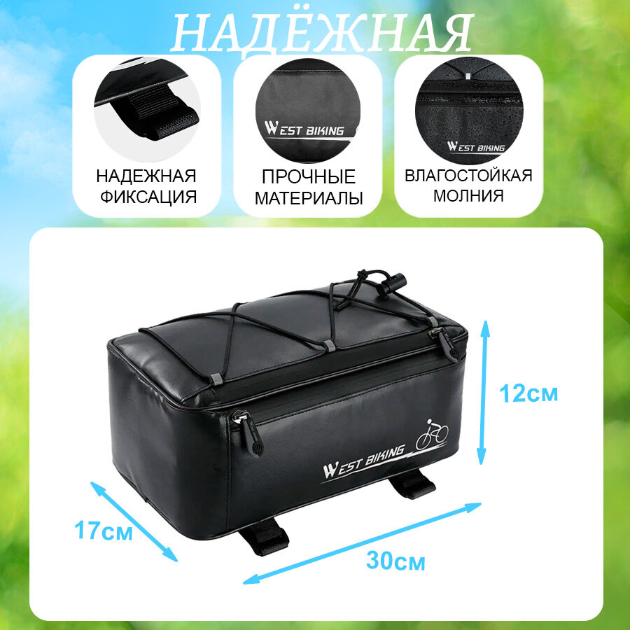 Сумка для велосипеда на багажник 30x17x12см с чехлом от дождя West Biking черная интересное: