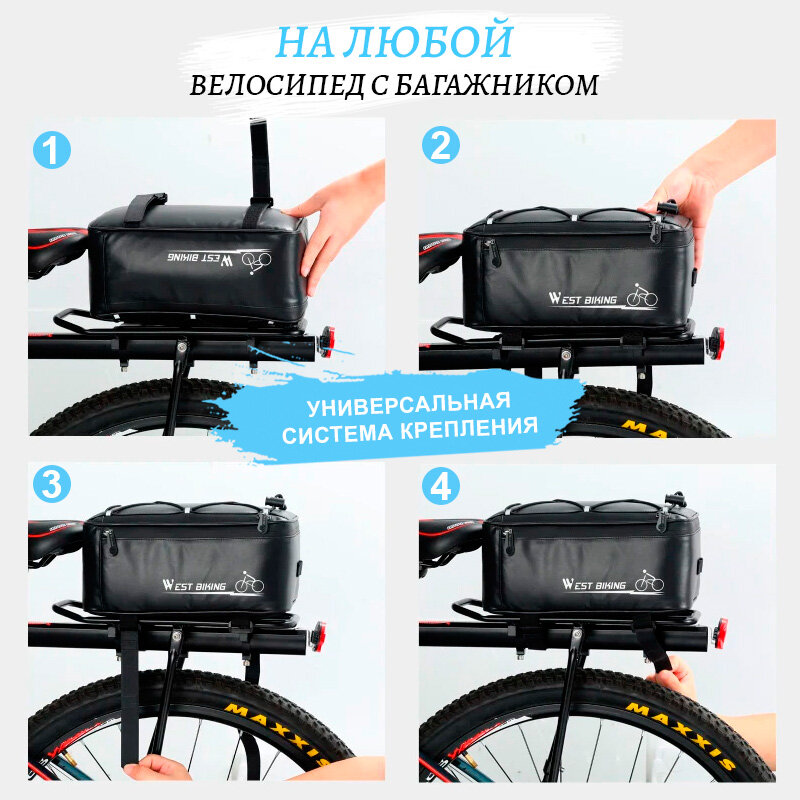 Ниже Вы можете прочитать отзывы на Сумка для велосипеда на багажник 30x17x12см с чехлом от дождя West Biking черная, ознакомится с подробными характеристиками, посмотреть интересные обзоры и фотографии на Сумка для велосипеда на багажник 30x17x12см с чехлом от дождя West Biking черная.