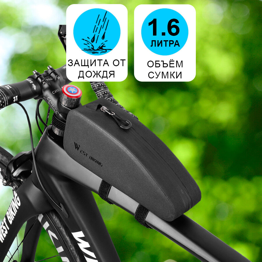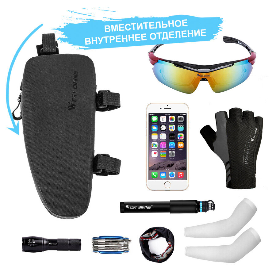 Сумка для велосипеда на раму 25x10.5x6.3см West Biking черная интересное: