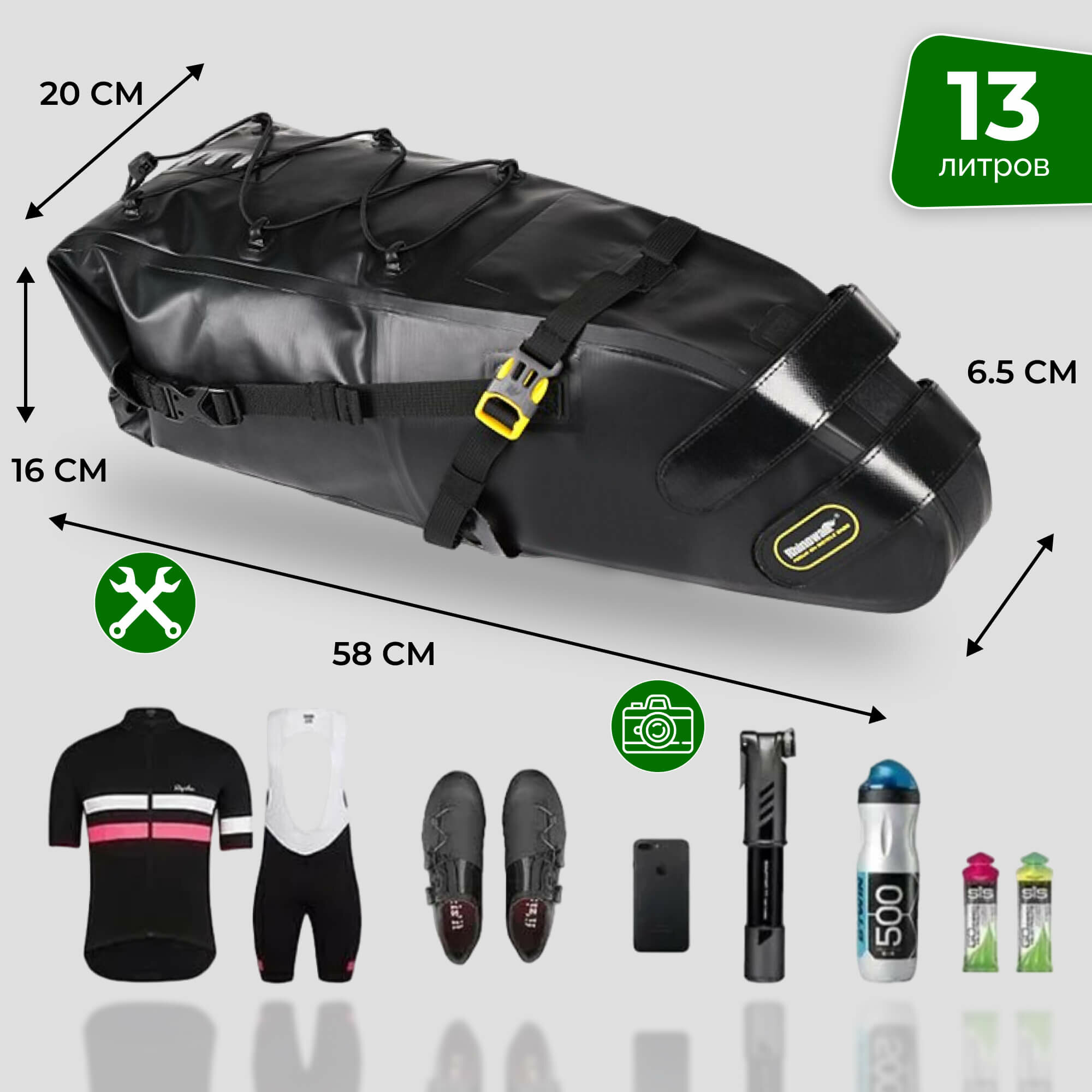 СохранитьСумка для велосипеда, Rhinowalk RK19513GN подседельная 13 литров интересное: