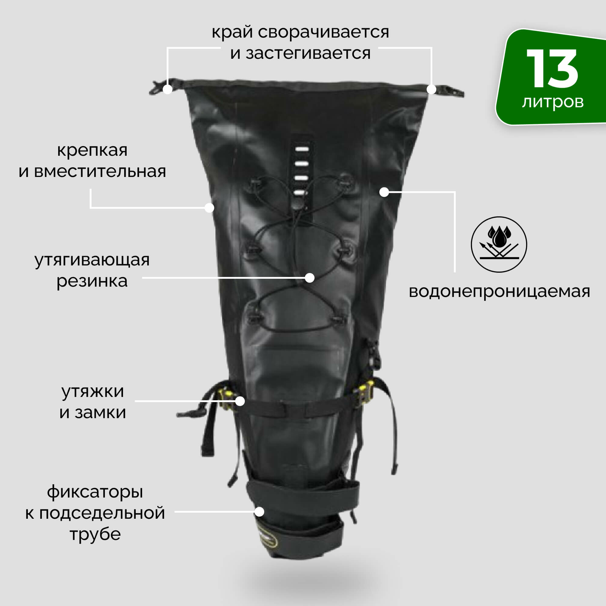 Сумка для велосипеда, подседельная 13 литров Rhinowalk RK19513