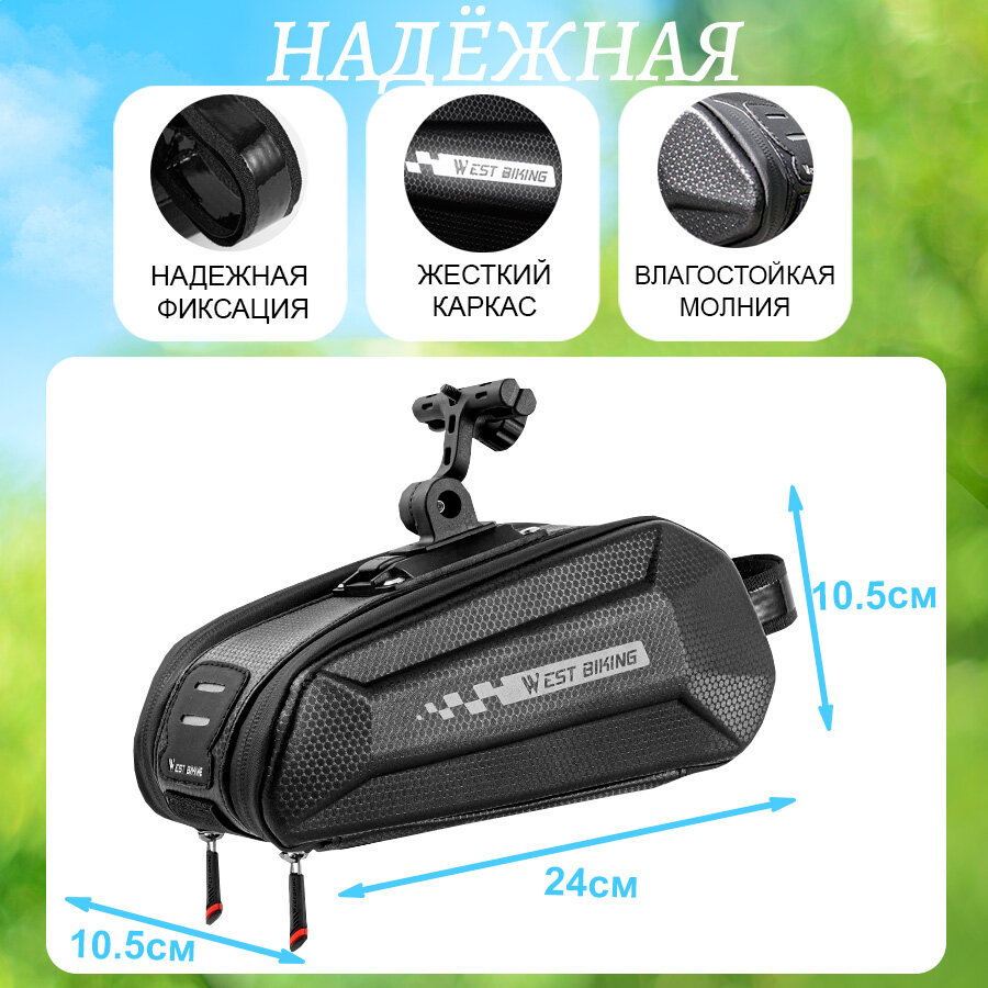 Сумка для велосипеда под седло 24x10.5x10.5см West Biking черная интересное: