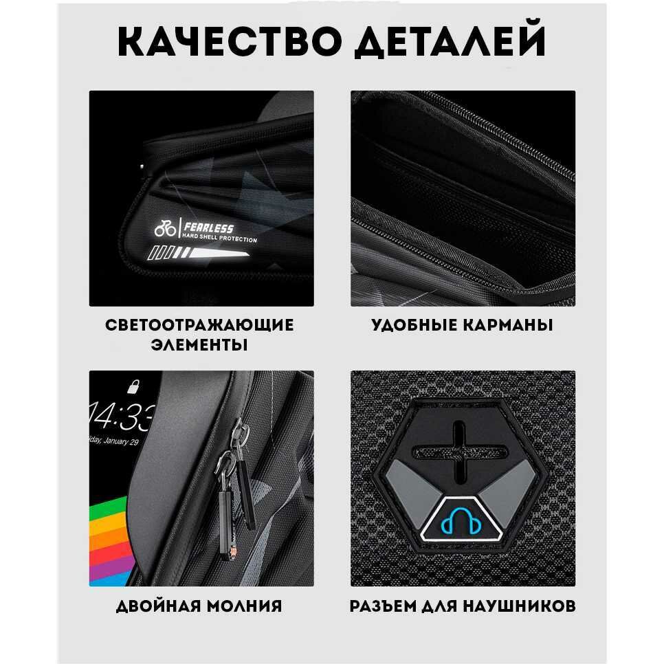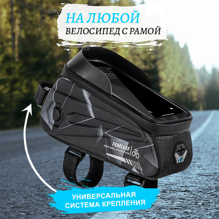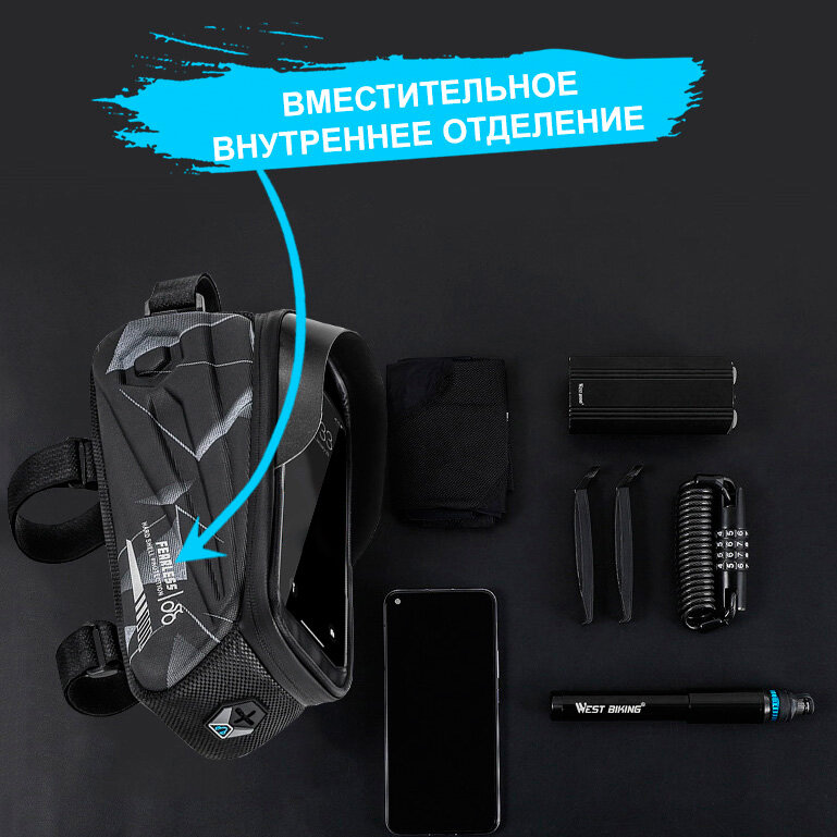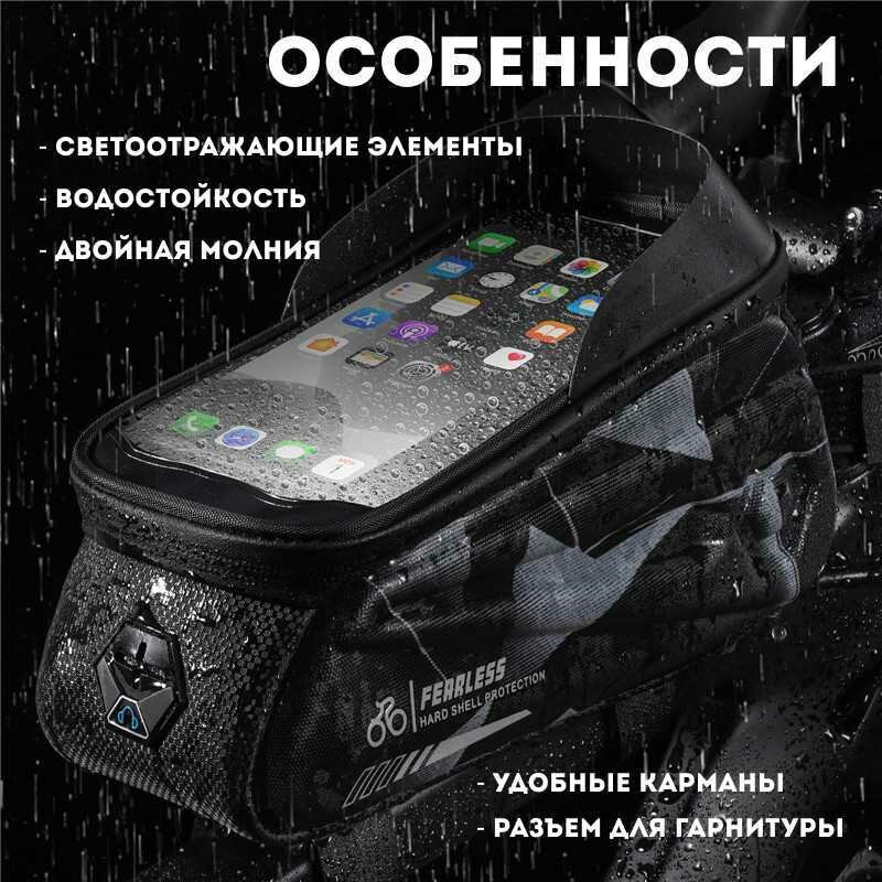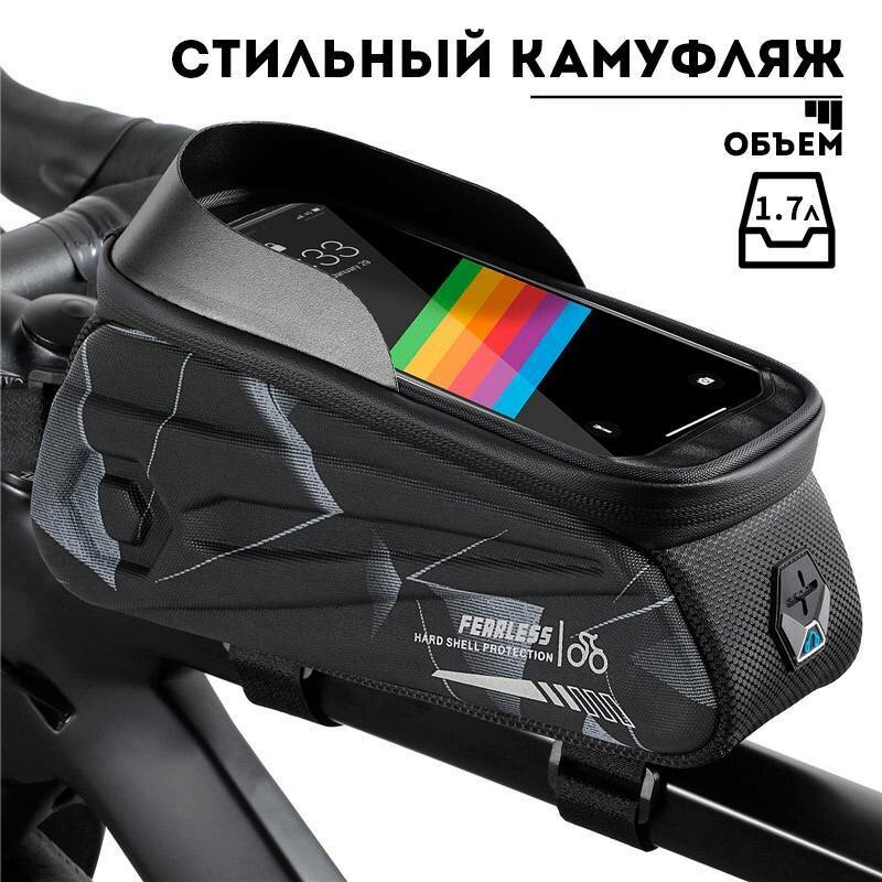 Сумка для велосипеда на раму 24x8x10см с чехлом для смартфона 7" West Biking black camo интересное: