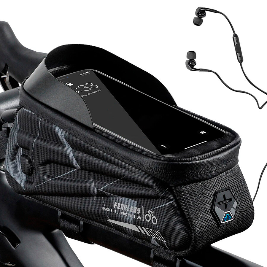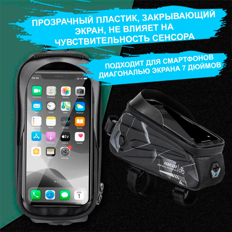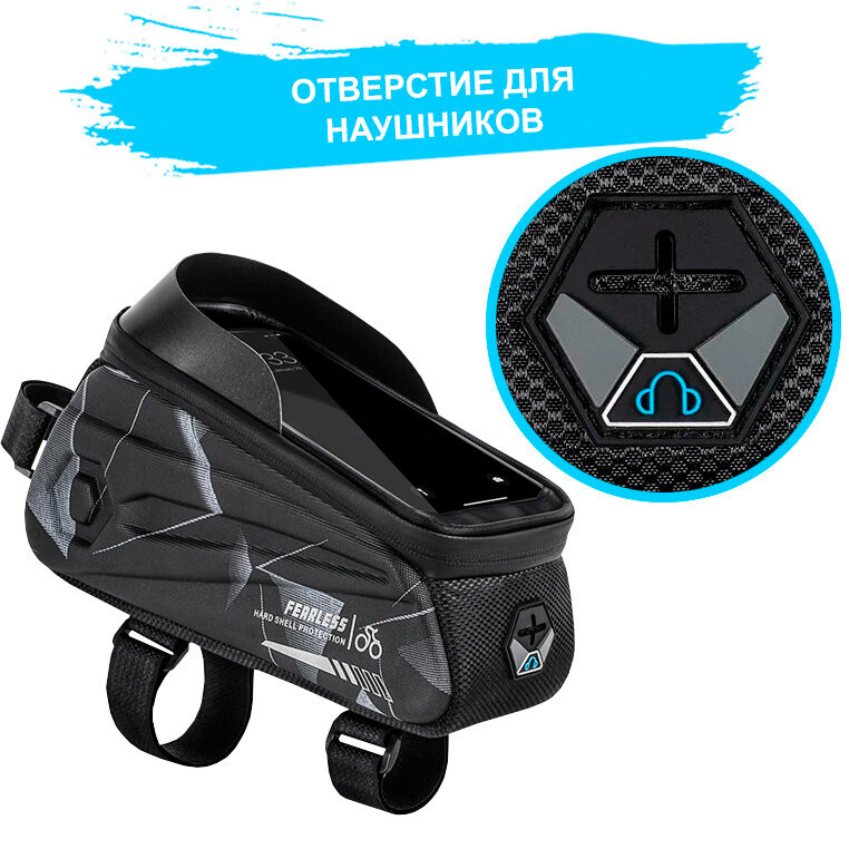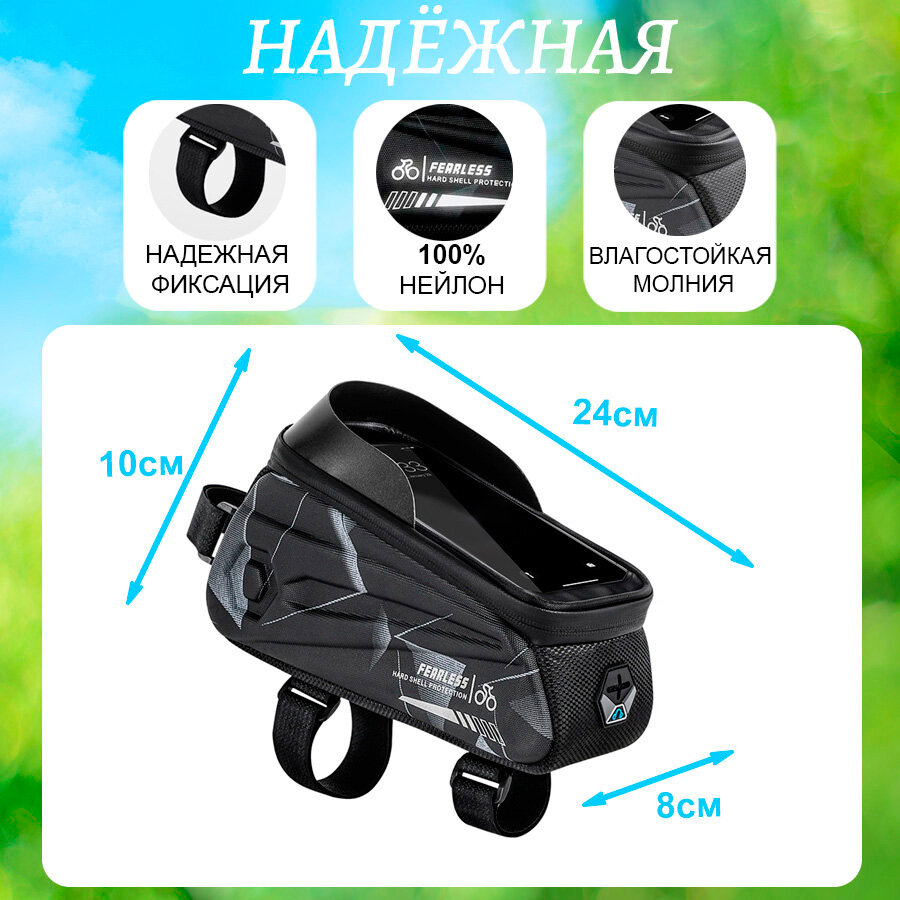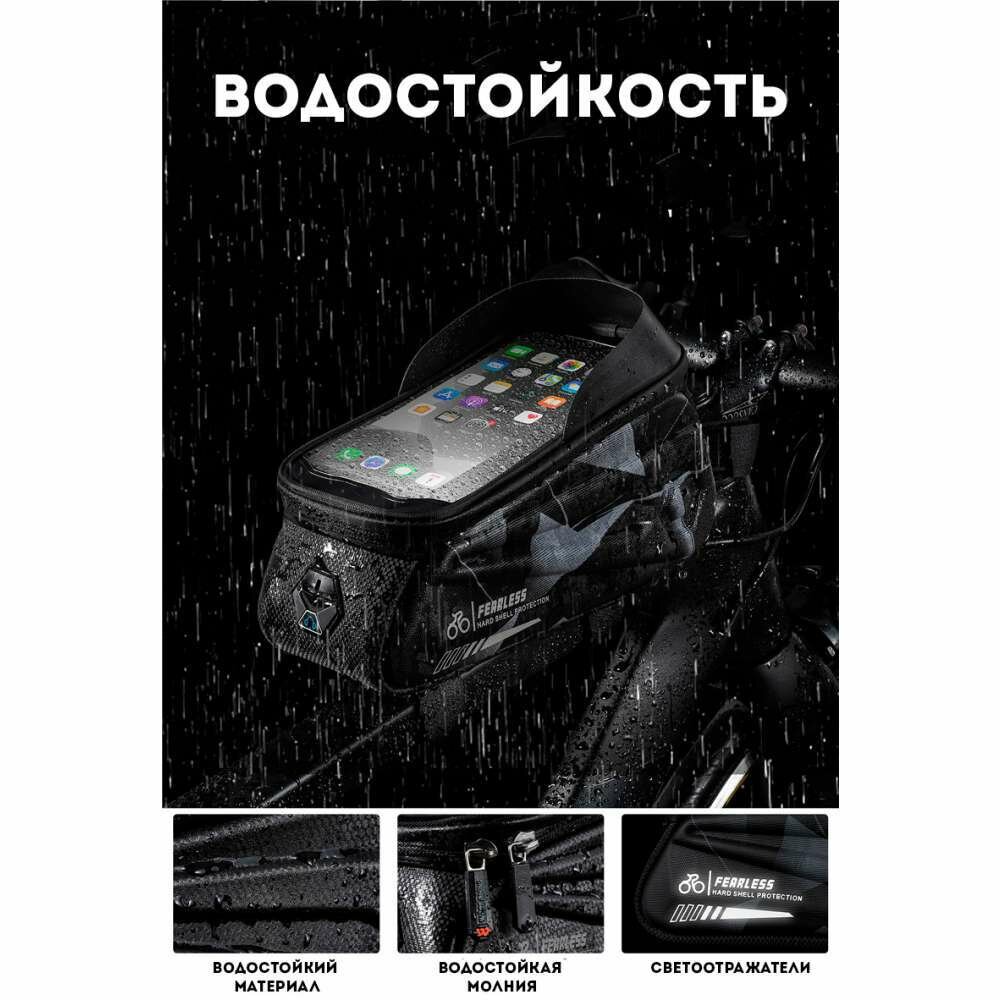 Сумка для велосипеда на раму 24x8x10см с чехлом для смартфона 7" West Biking black camo интересное: