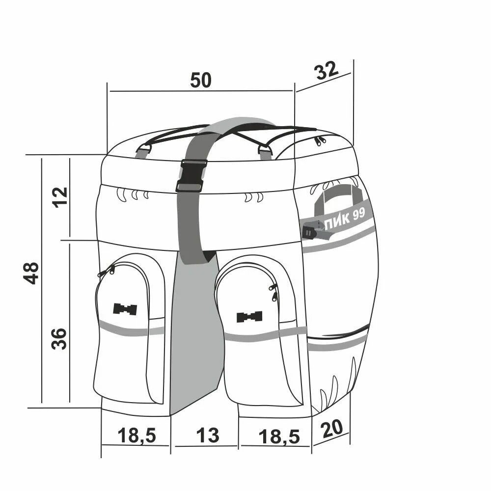 Велорюкзак-штаны на багажник, ПИК-99, ТРЕК-62М-3 оксфорд, серо-красный