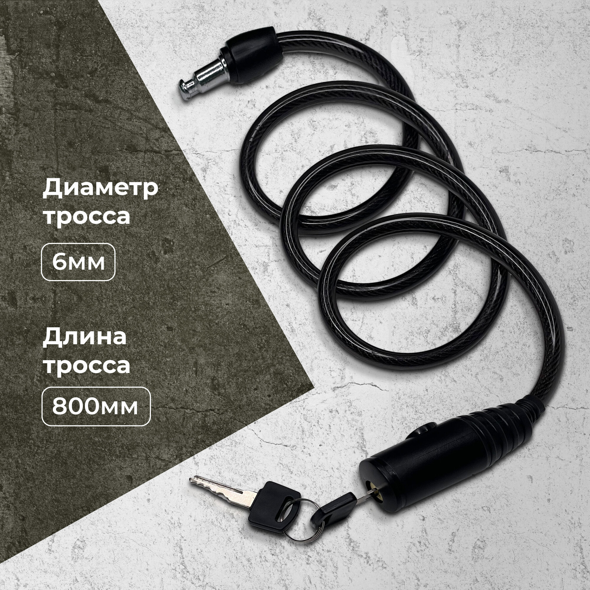 40051 Замок велосипедный тросовый с ключом, замок для коляски, для самоката BASARA B3-800 MBP, 800 мм интересное: