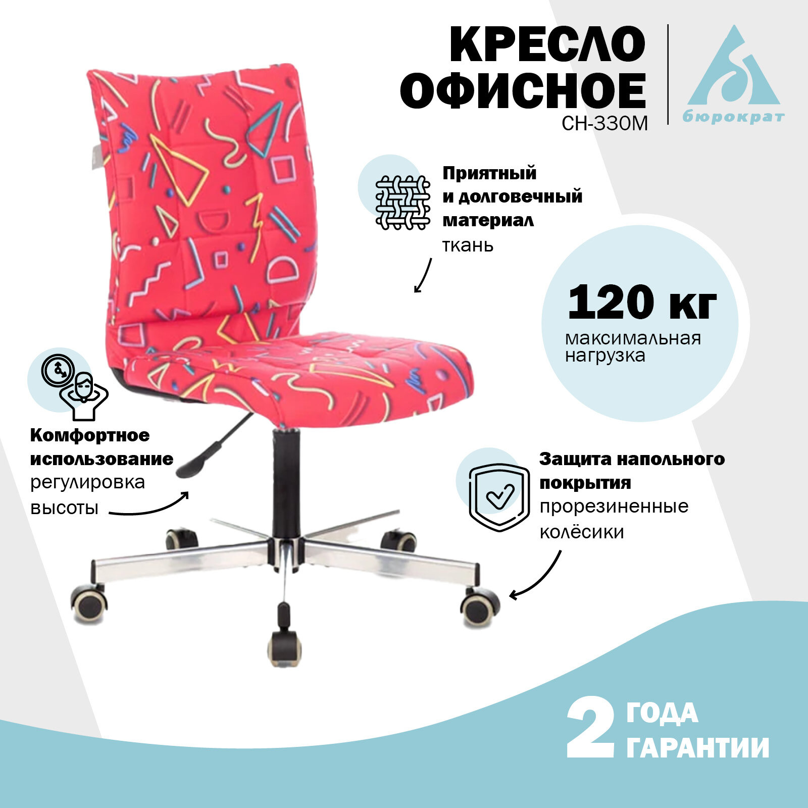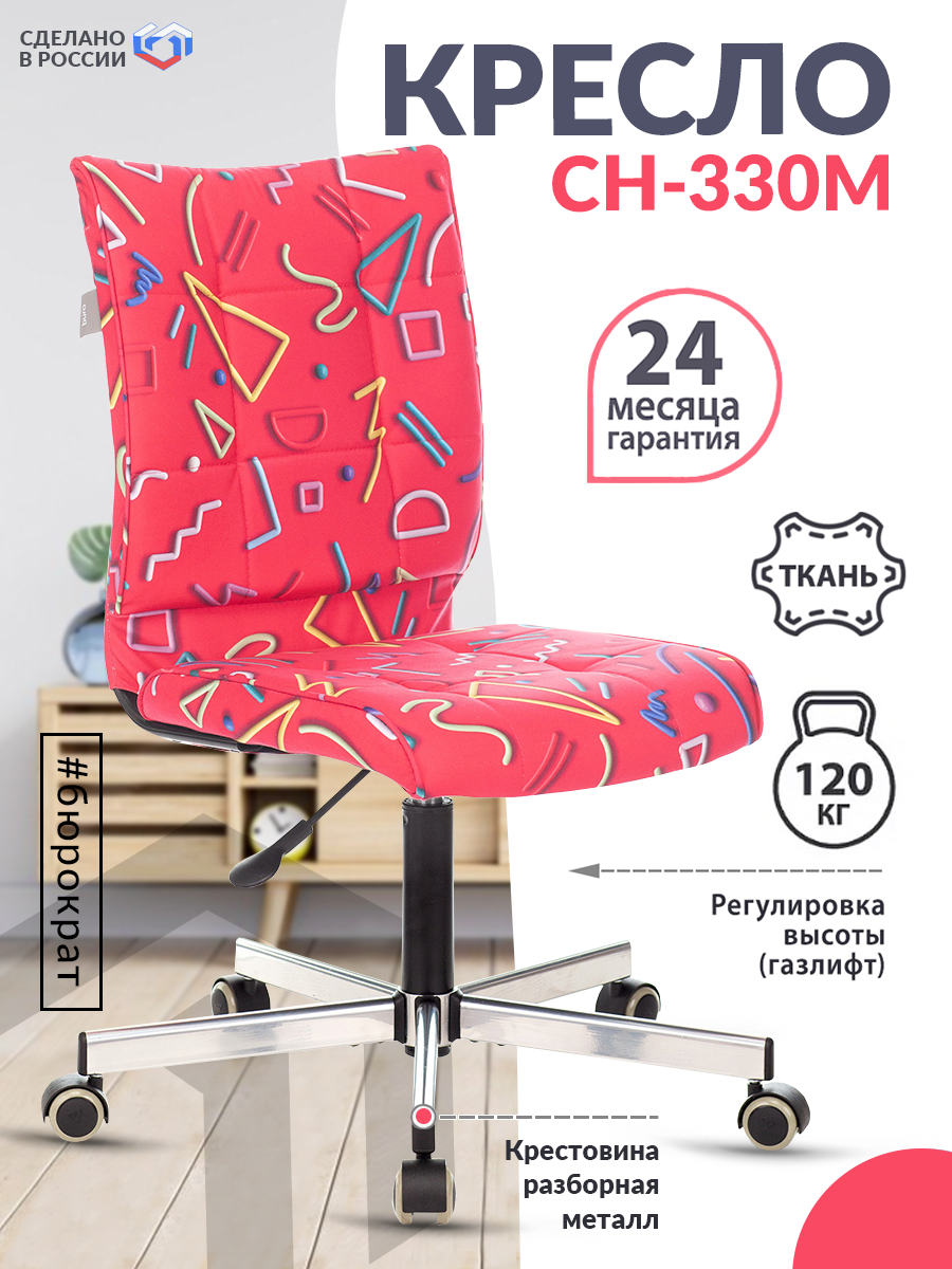 СохранитьКресло CH-330M, без подлокотников, пятилучие серебристое, ткань, красное с рисунком интересное: