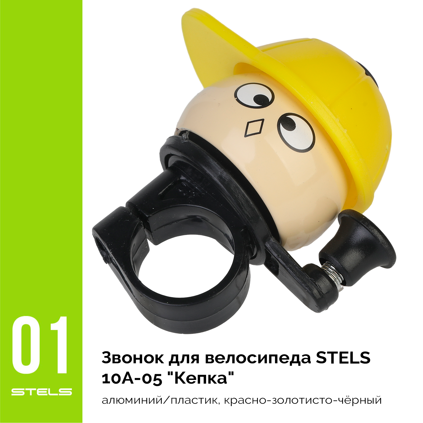 Звонок для велосипеда STELS STELS 10A-05 "Кепка" алюминий/пластик, красно-золотисто-чёрный интересное: