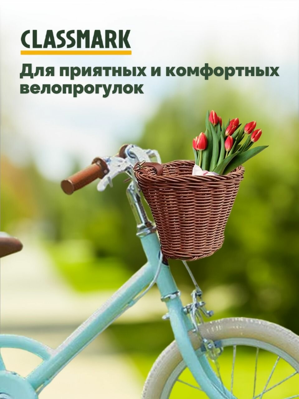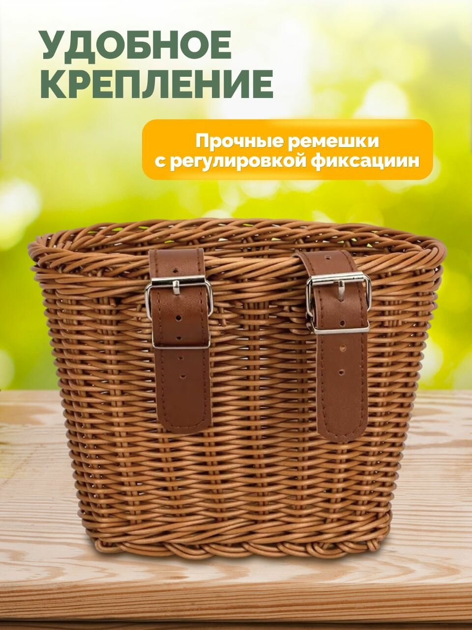 Корзина для велосипеда Classmark универсальная на руль передняя, велокорзина для самоката плетеная, на ремнях интересное: