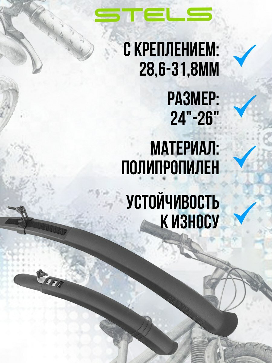 Крылья для велосипеда 24"-26" TEN-051 пластиковые чёрные, крепл. для подсед. пальцев 28.6-31.8мм NEW