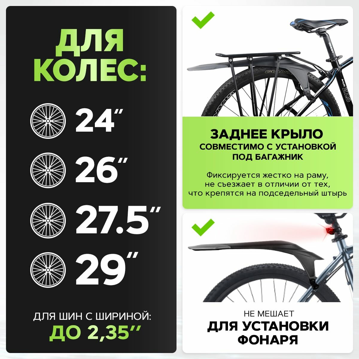 Купить Крылья для велосипеда 24, 26, 27.5, 29 дюймов, комплект