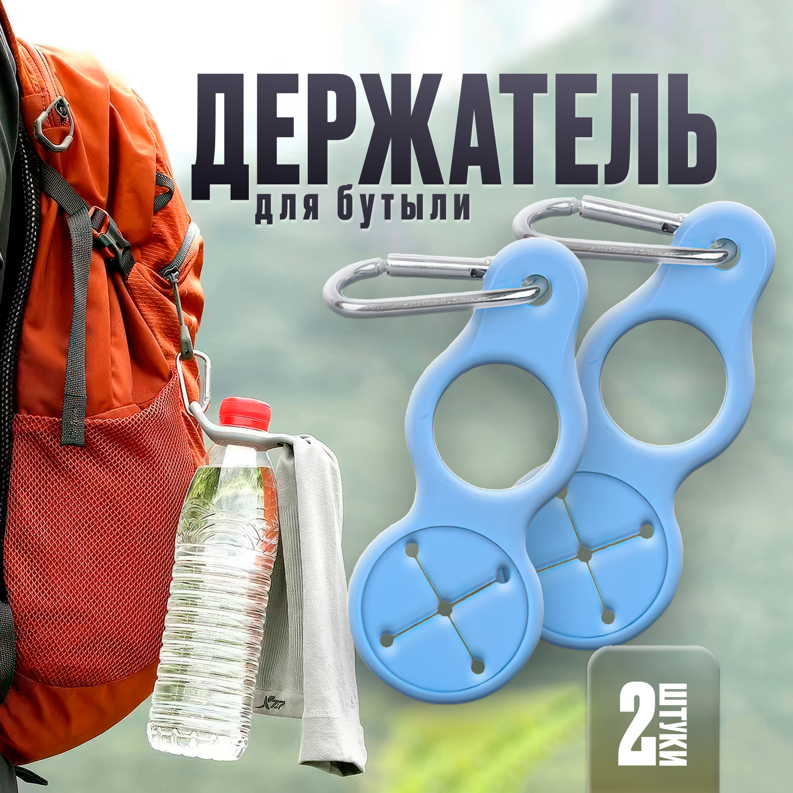Карабин держатель для бутылок голубой, тактический ремень для крепления фляги с водой в поход