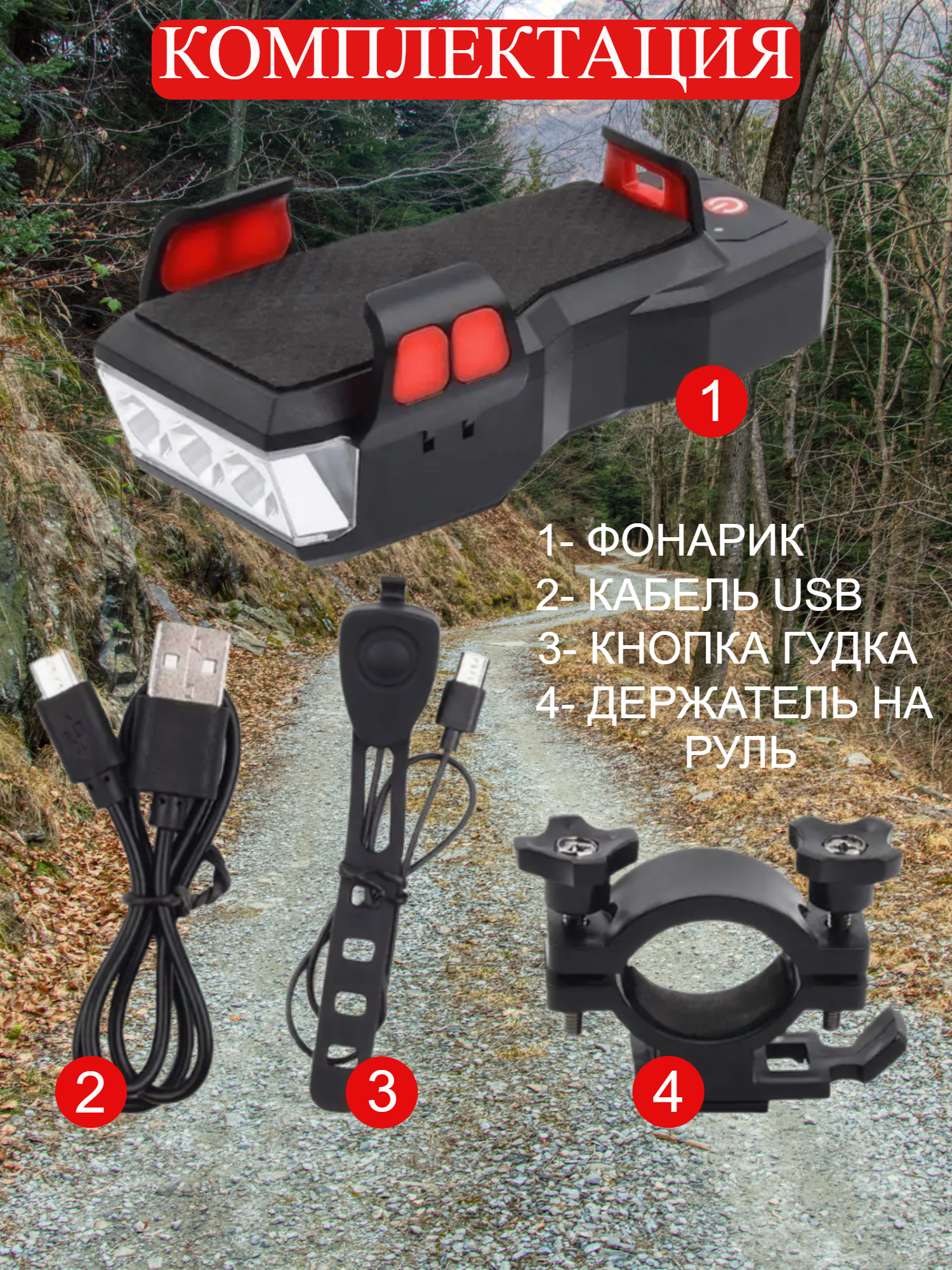 Фонарь велосипедный аккумуляторный светодиодный передний с гудком (оранжевый)