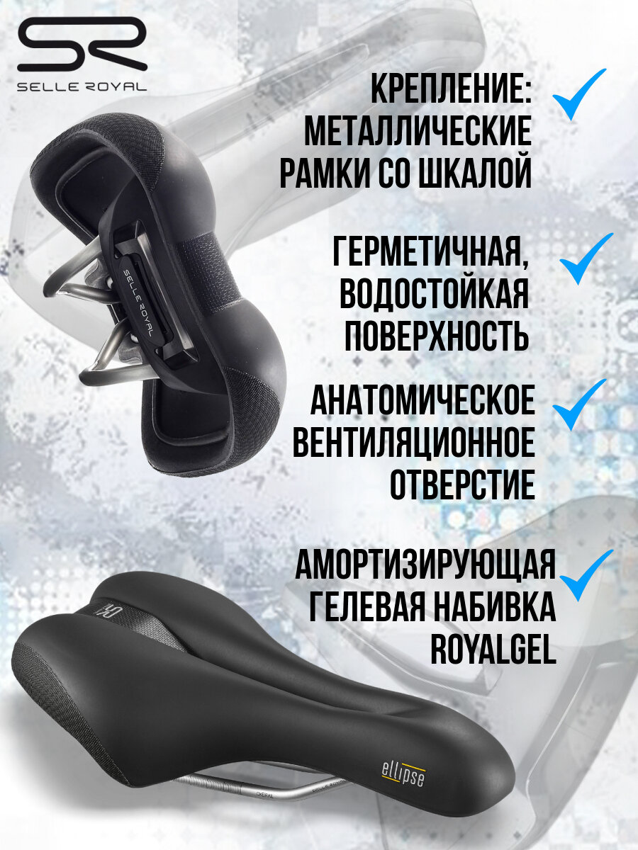 Сиденье для велосипеда SELLE ROYAL Ellipse Athletic 163х266 мм, 02-300252 интересное: