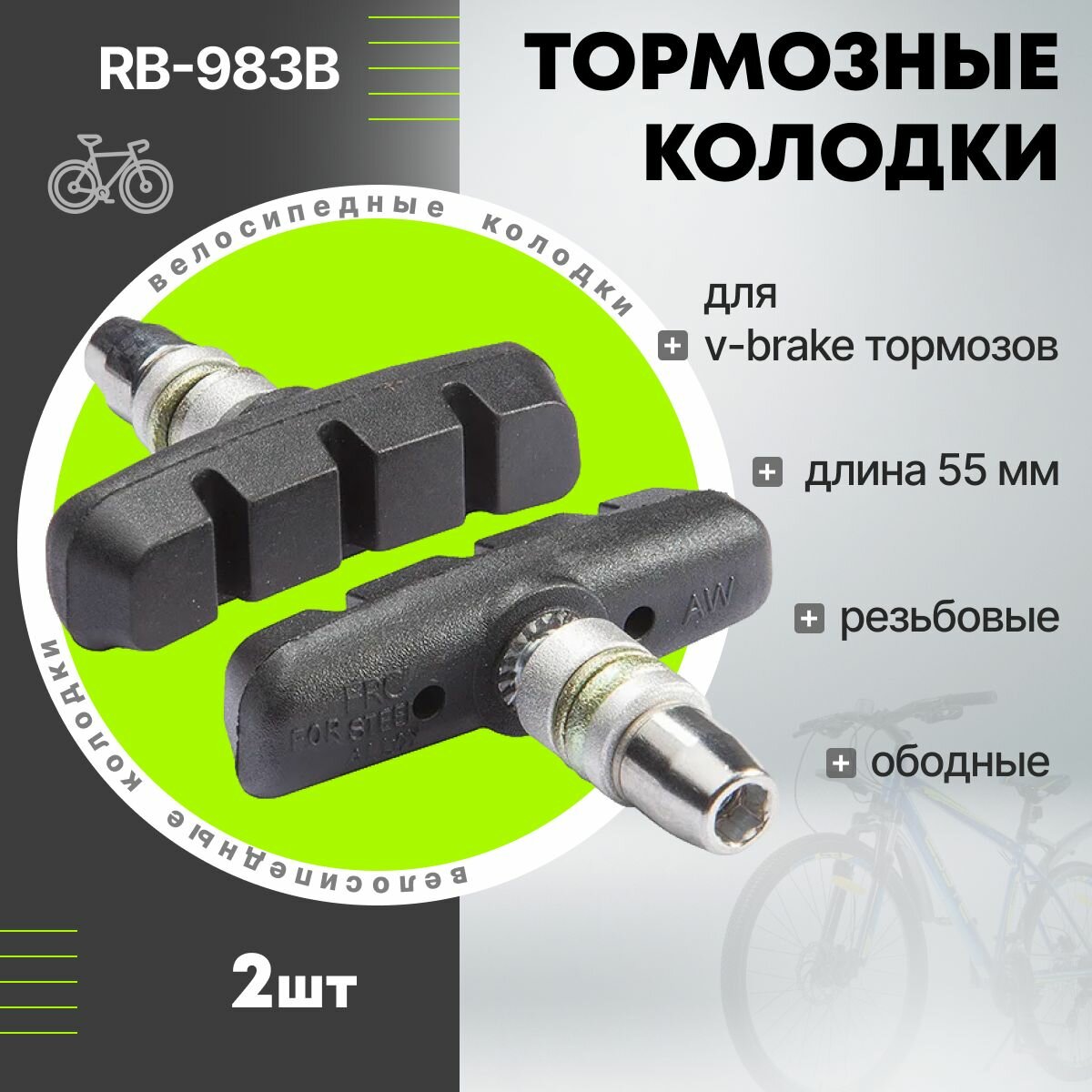 Тормозные колодки велосипедные резьбовые, для ободных тормозов 55 мм RB-983B STELS интересное: