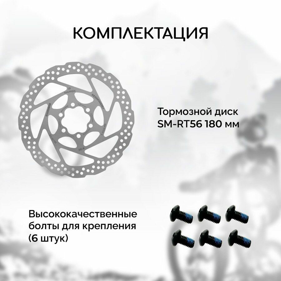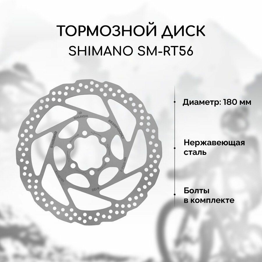 Тормозной диск для велосипеда Shimano RT56 180 мм + 6 болтов, нержавеющая сталь интересное: