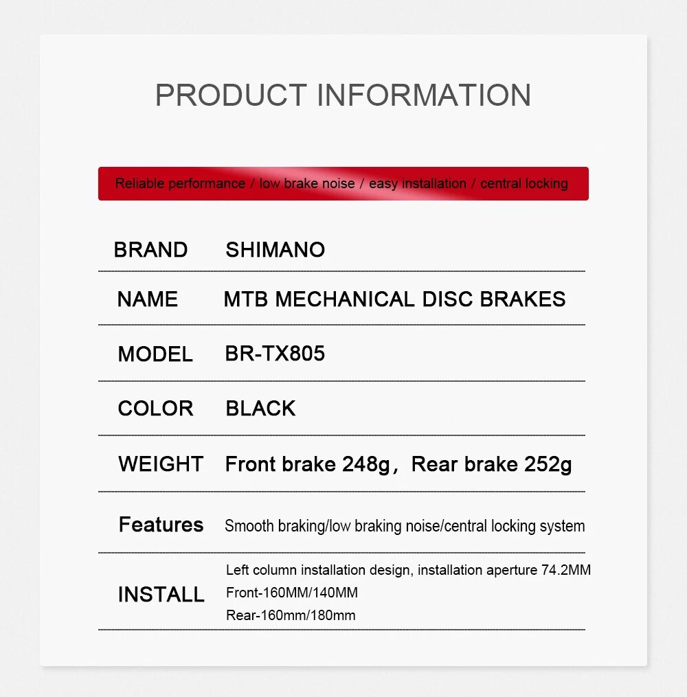 Скобы механического дискового тормоза Shimano TOURNEY TX BR-TX805, Черный интересное: