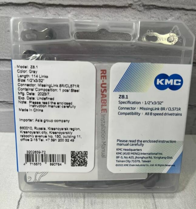 Цепь KMC Z8.1 - 114 звеньев - 8 скоростей с замком CL571R интересное: