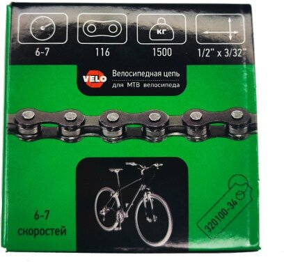 Цепь 1/2 X 3/32 116 звеньев "VELO" для спортивного велосипеда 6-7 скоростей, с замком интересное: