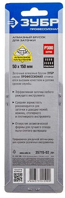 ЗУБР 50х150мм, Р300, заточной, средняя зернистость, алмазный брусок Профессионал (35715-02_z01) интересное: