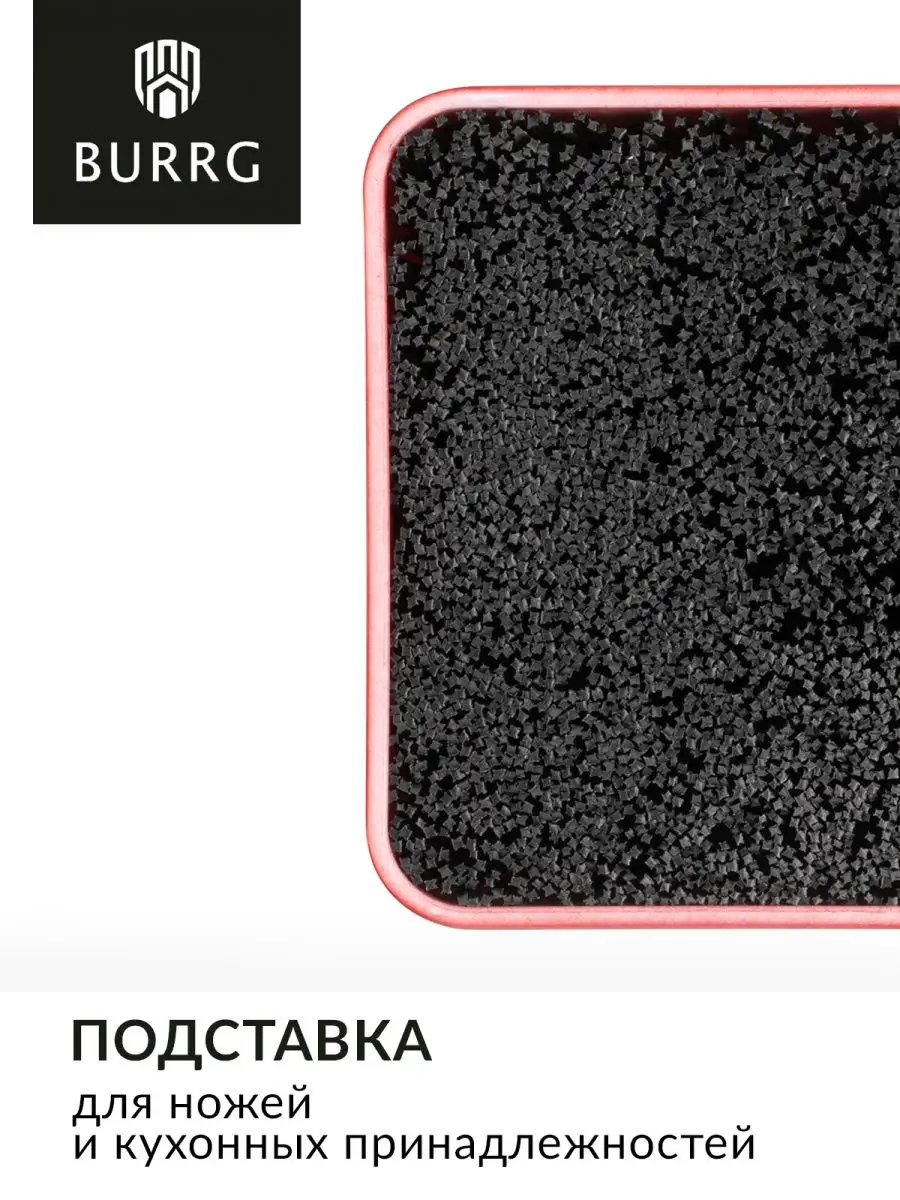 Burrg Подставка для ножей с наполнителем 22х10х10 см, квадратная, красный мрамор дерево интересное: