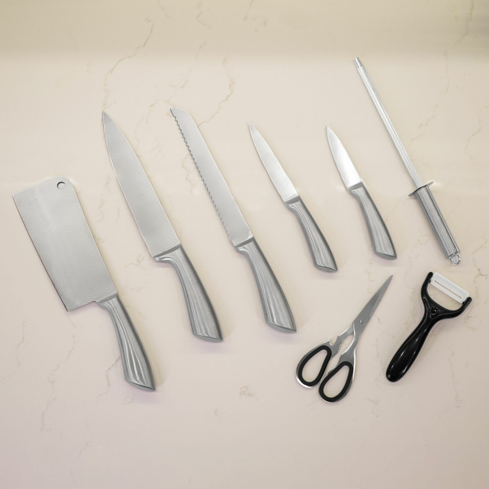 | Комплектация | Кухонные ножи: Нож поварской - 1 шт. Нож для хлеба - 1 шт. Нож разделочный - 1 шт. Нож универсальный - 1 шт. Нож для чистки овощей - 1 шт. Подставка - 1 шт. |
