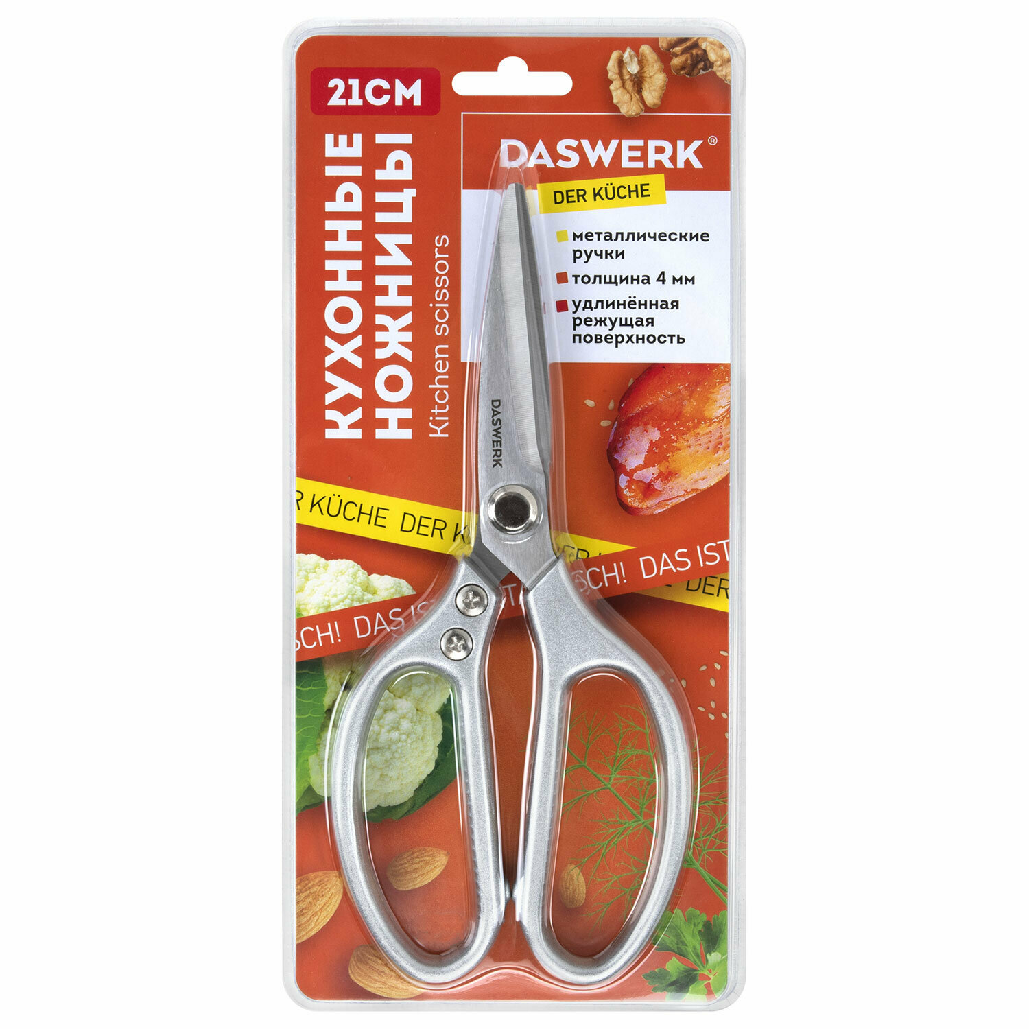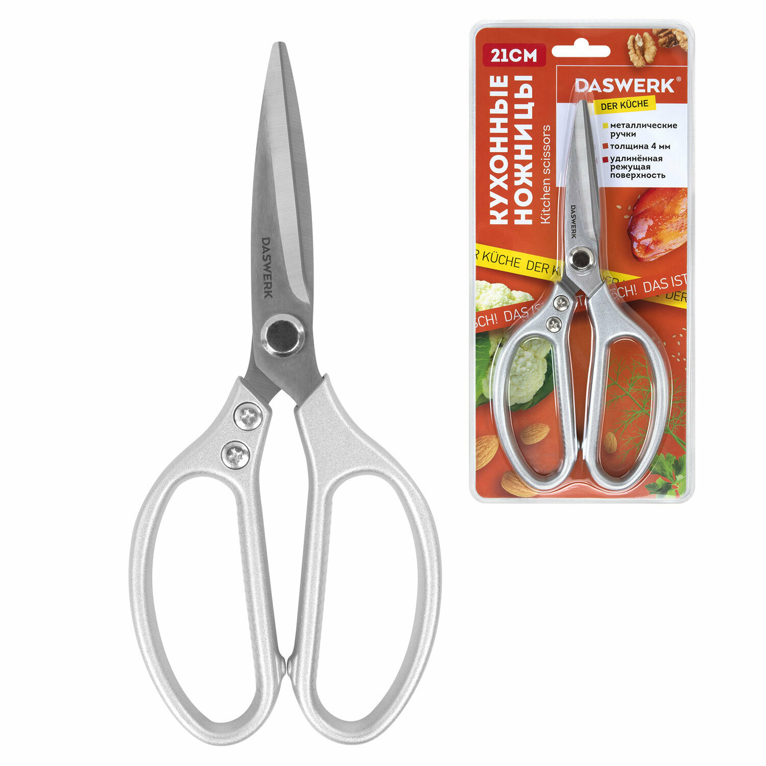 Купить Ножницы кухонные Daswerk, 210 мм, удлиненное лезвие, металлические ручки, 608900