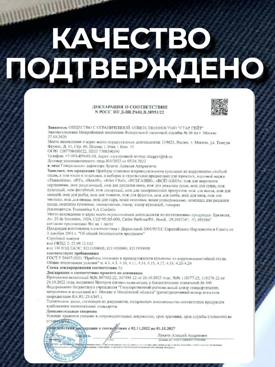 Набор кухонных ножей Tramontina - 5 предметов (синий) интересное: