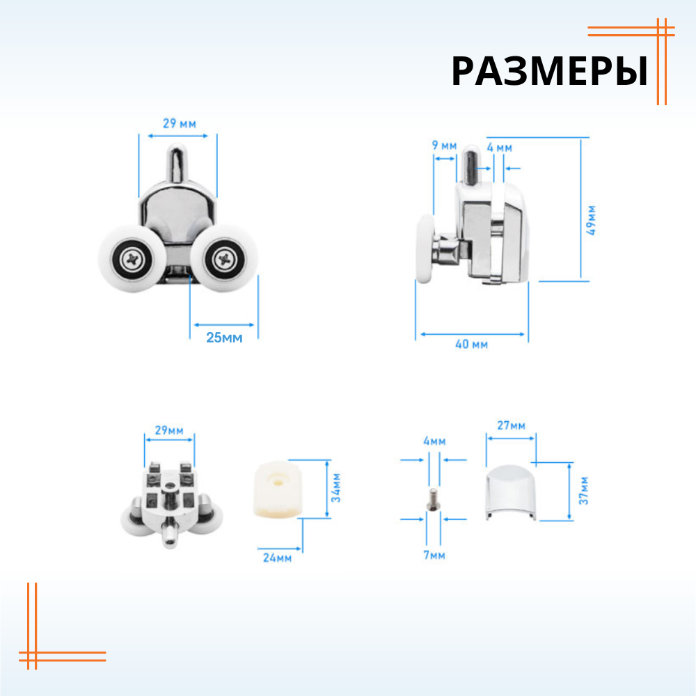 Ролики для душевой кабины 25 мм нижние / колесики для дверей интересное: