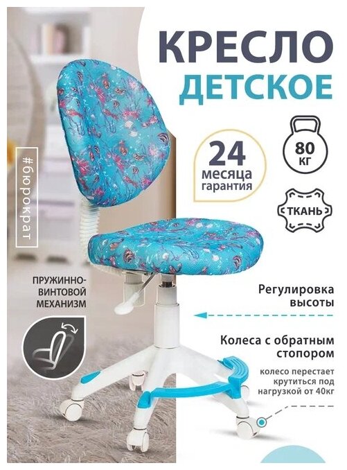 Купить Кресло детское KD-W6-F голубой аквариум, ткань / Компьютерное кресло для ребенка, школьника, подростка
