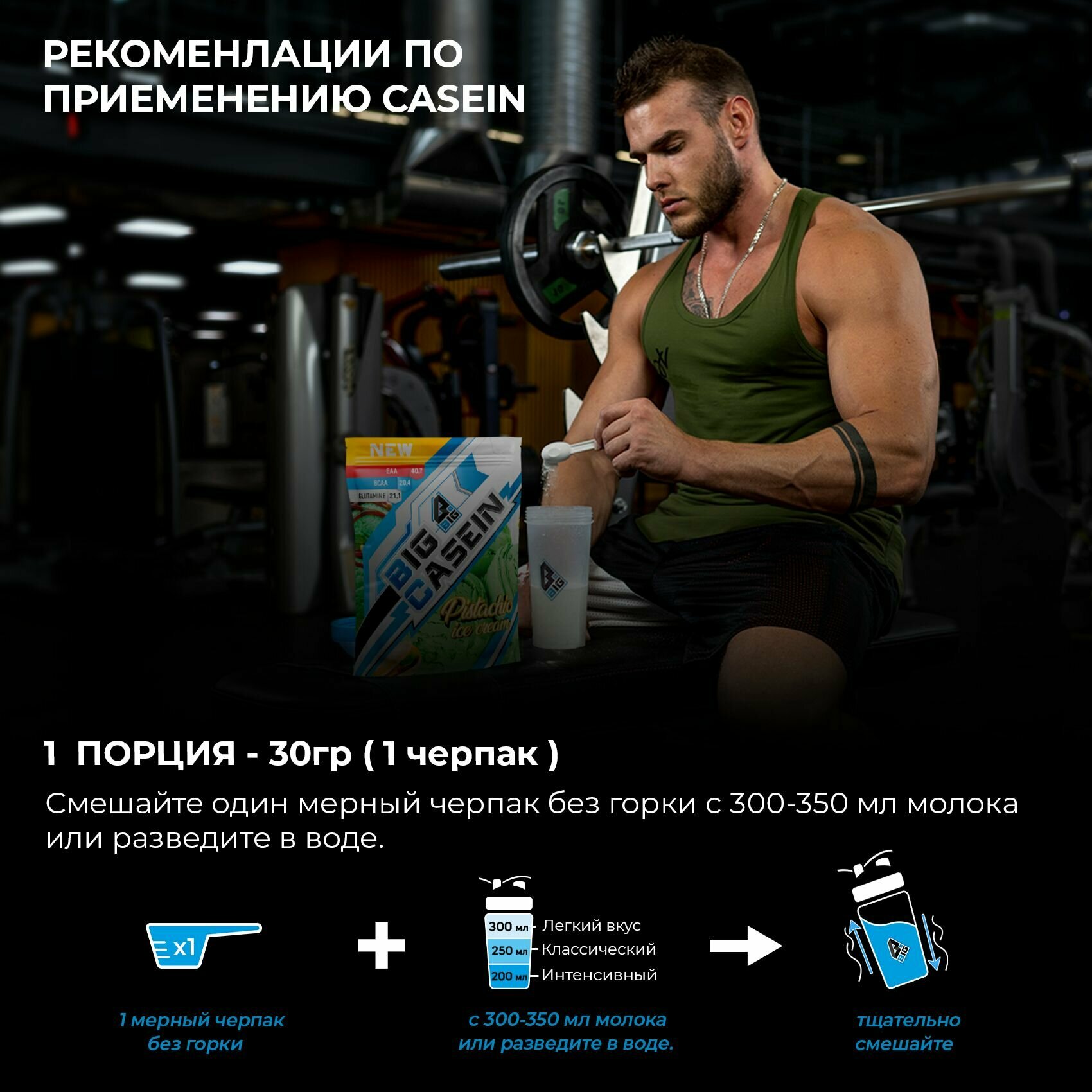 Казеин BIGSNT BIG CASEIN, мицеллярный для набора мышечной массы / 420 грамм, Фисташковое мороженое
