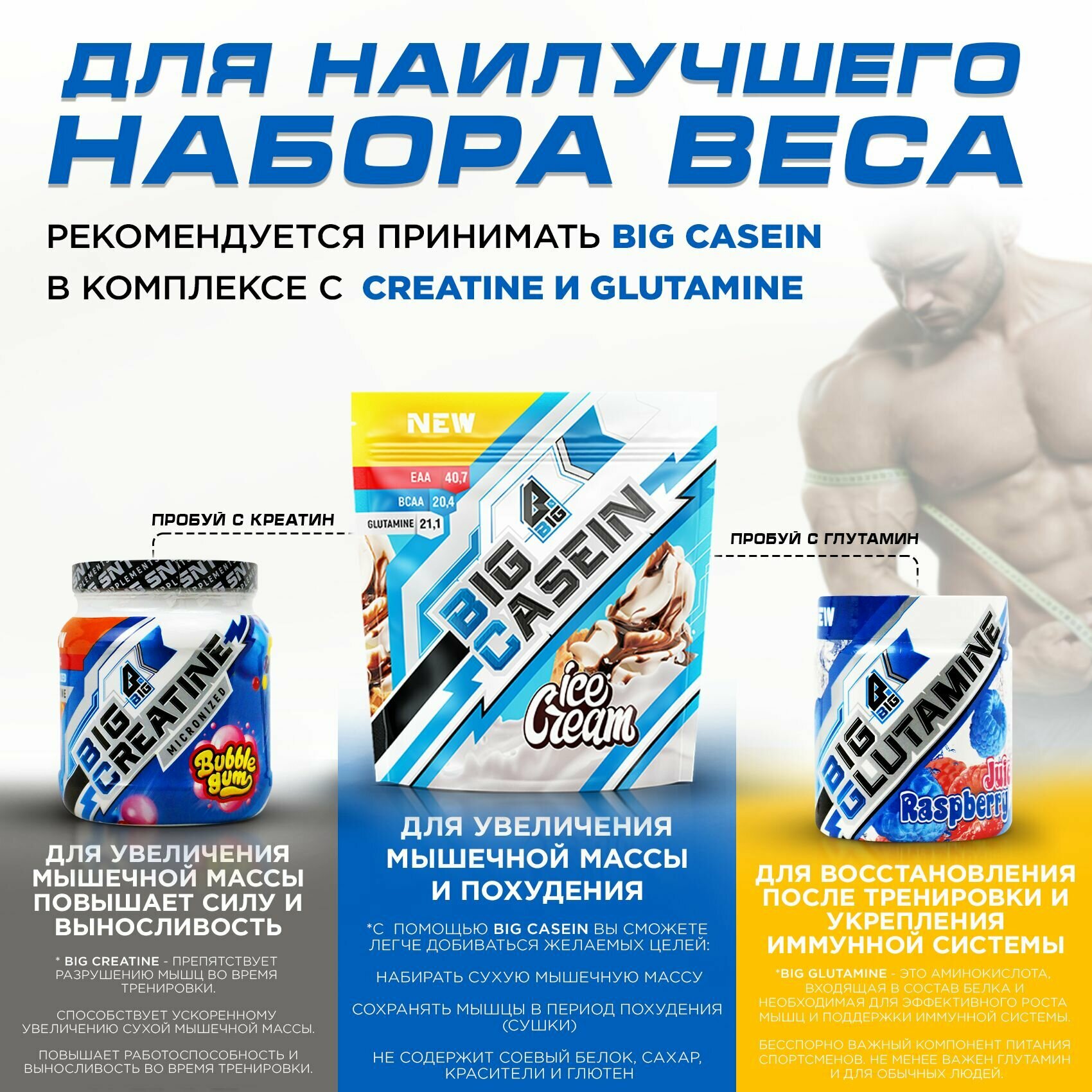 Ниже Вы можете прочитать отзывы на Казеин BIGSNT BIG CASEIN, мицеллярный для набора мышечной массы / 840 грамм, Мороженое, ознакомится с подробными характеристиками, посмотреть интересные обзоры и фотографии на Казеин BIGSNT BIG CASEIN, мицеллярный для набора мышечной массы / 840 грамм, Мороженое.