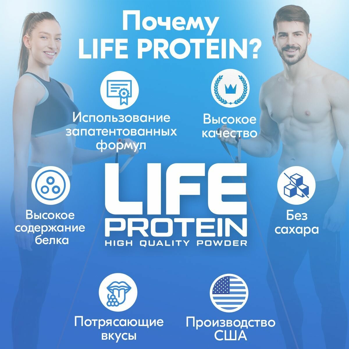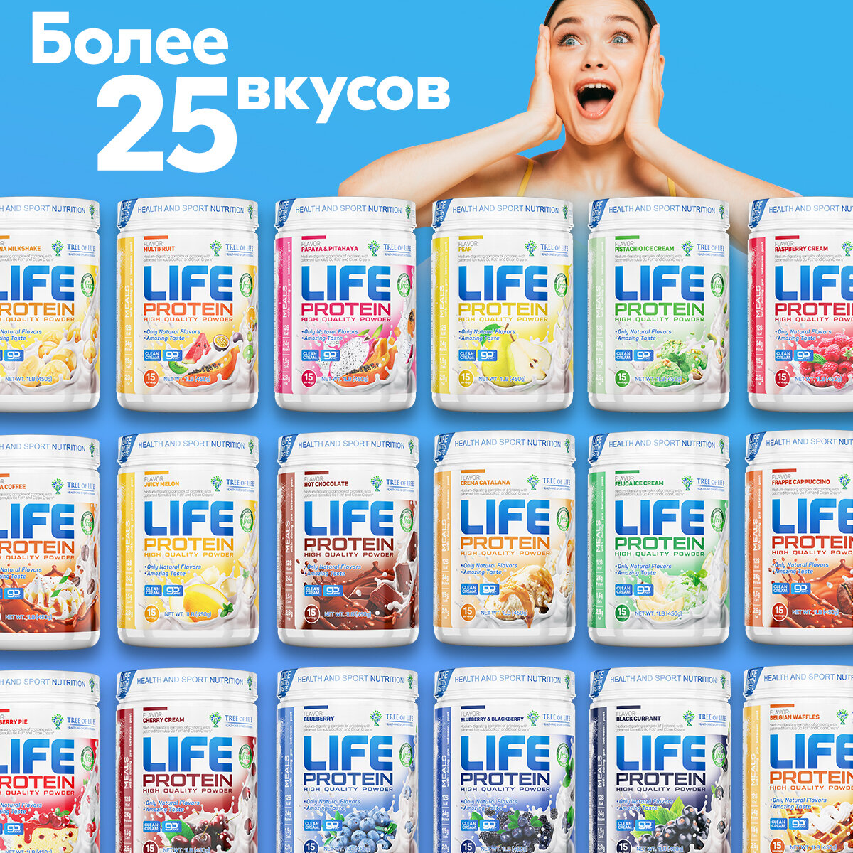 Набор двух вкусов протеин изолят сывороточный многокомпонентный Лайф Life Protein. Вкусный белковый коктейль, 2 банки по 450 гр. интересное: