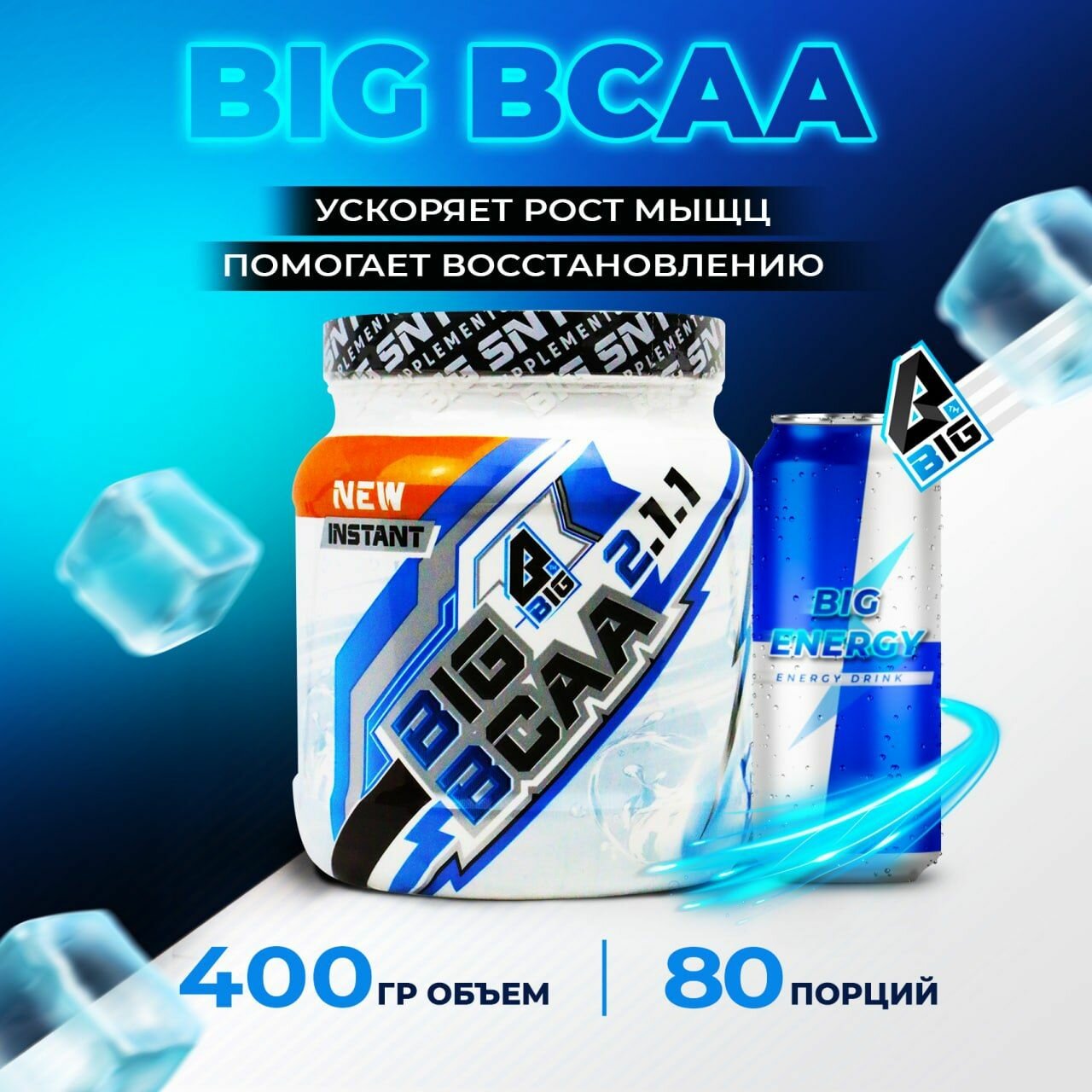 Купить BCAA 2:1:1 BIGSNT спортивное питание / комплекс незаменимых аминокислот для роста мышц, порошок, 400 г (80 порций), вкус Энергетик