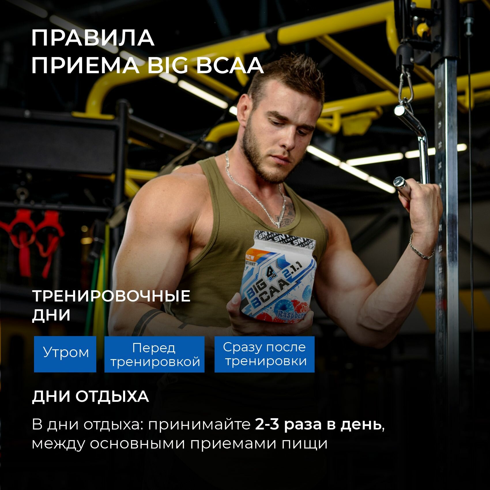 Ниже Вы можете прочитать отзывы на BCAA 2:1:1 BIGSNT спортивное питание / комплекс незаменимых аминокислот для роста мышц, порошок, 400 г (80 порций), вкус Малина, ознакомится с подробными характеристиками, посмотреть интересные обзоры и фотографии на BCAA 2:1:1 BIGSNT спортивное питание / комплекс незаменимых аминокислот для роста мышц, порошок, 400 г (80 порций), вкус Малина.