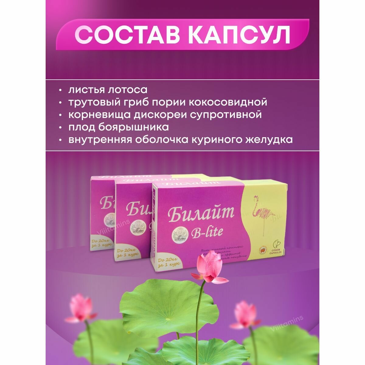 | Состав | Гартензия гамбоджийская, Лотос, Боярышник, Трутовый гриб, Диоскорея, Фермент корня колеус форсколии, Семена померанца |