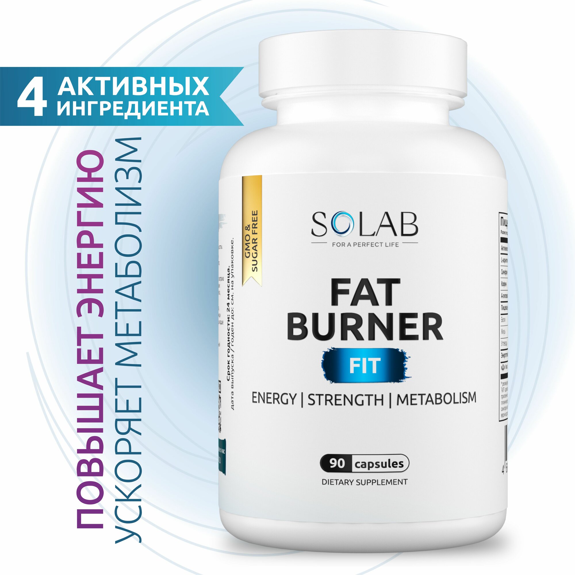 Жиросжигатель FAT BURNER FIT SOLAB cпортивный для похудения CLA 90 капсул