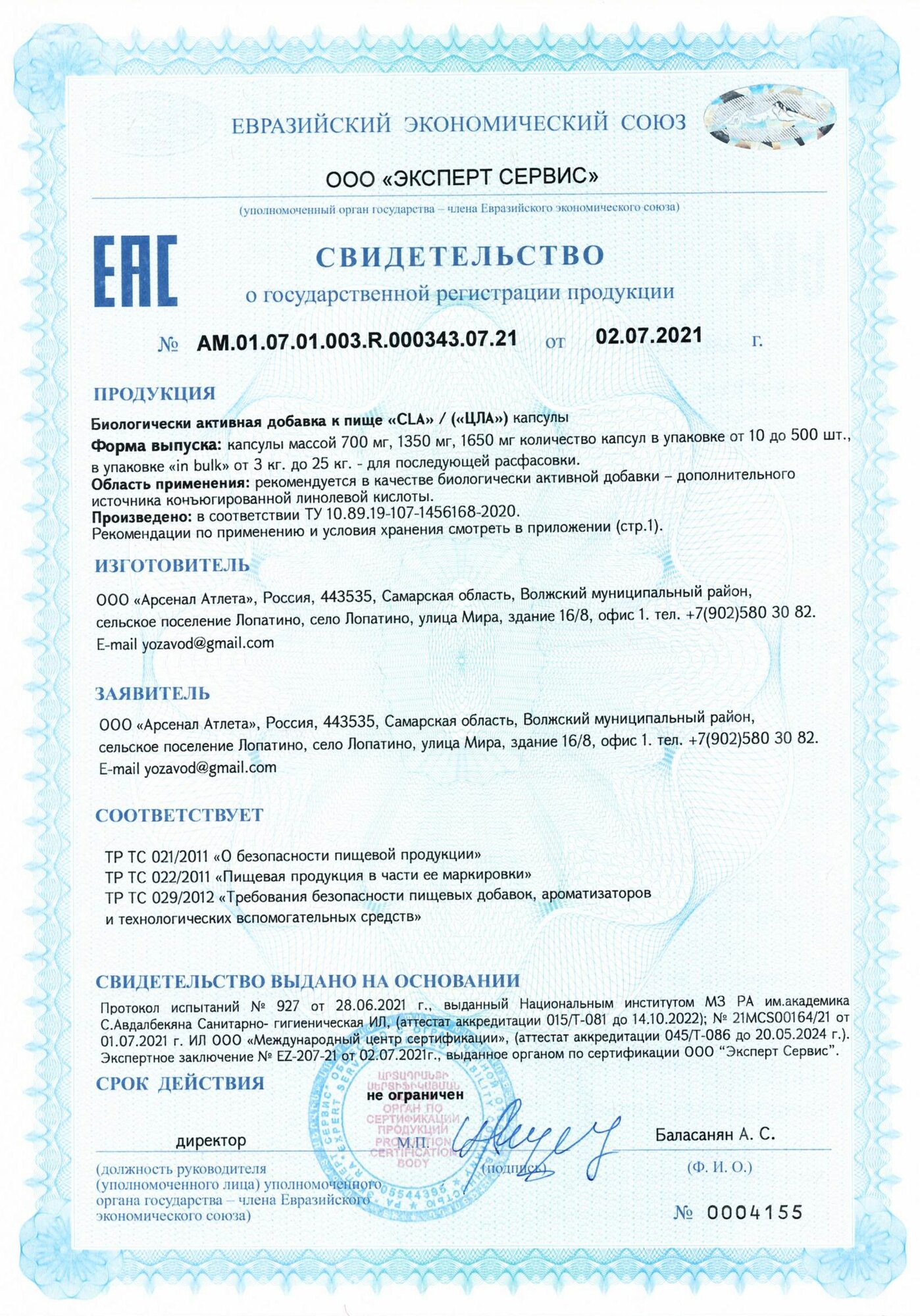 | Срок годности | 730 мес |