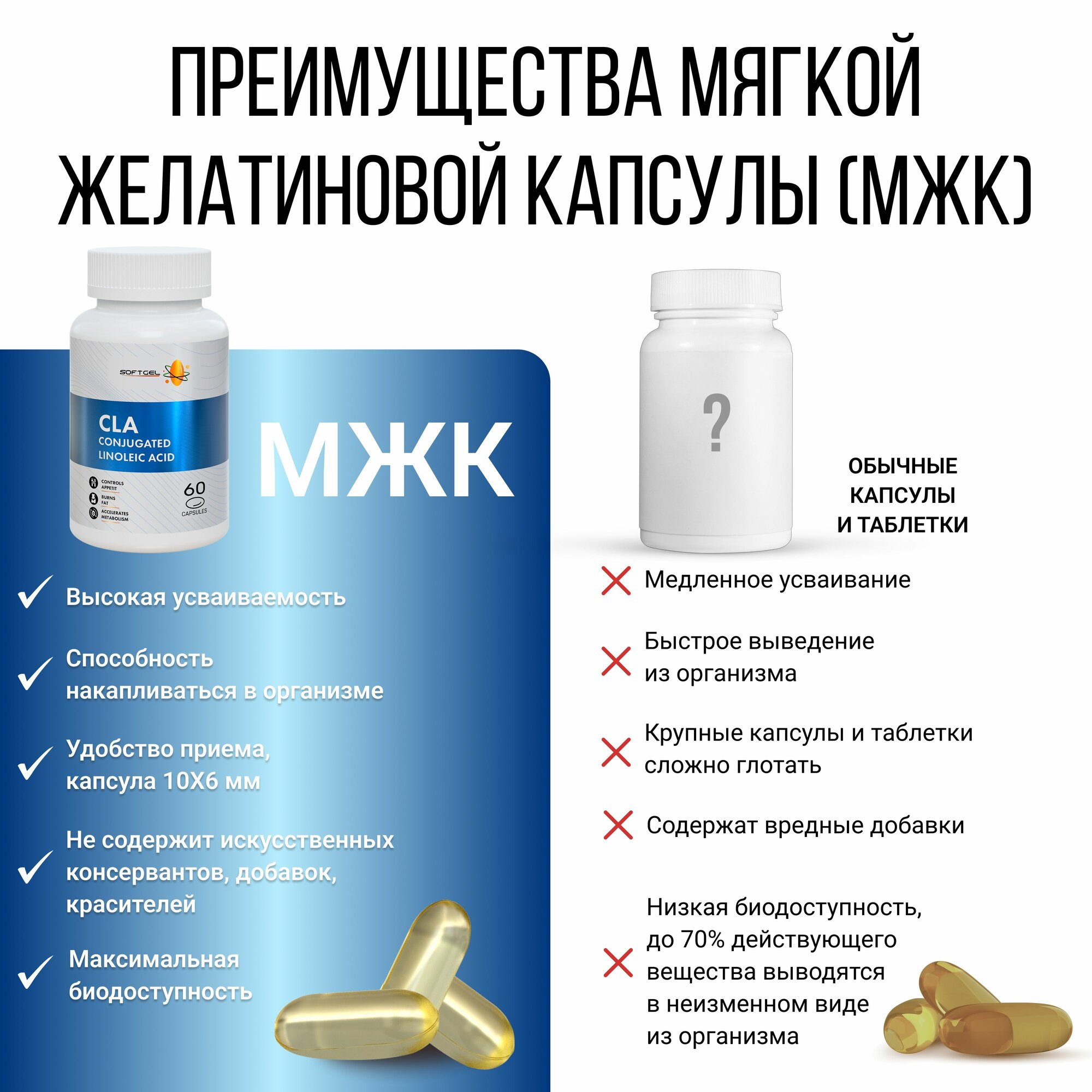 CLA конъюгированная линолевая кислота 740 мг SOFTGEL жиросжигатель, для похудения, 60 капсул