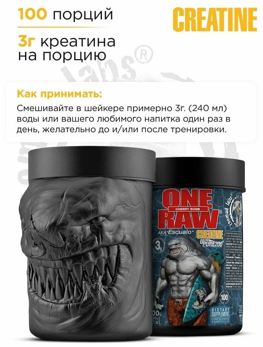 Креатин ZOOMAD RAW One Creatine - 300гр, Фруктовый пунш, банка интересное: