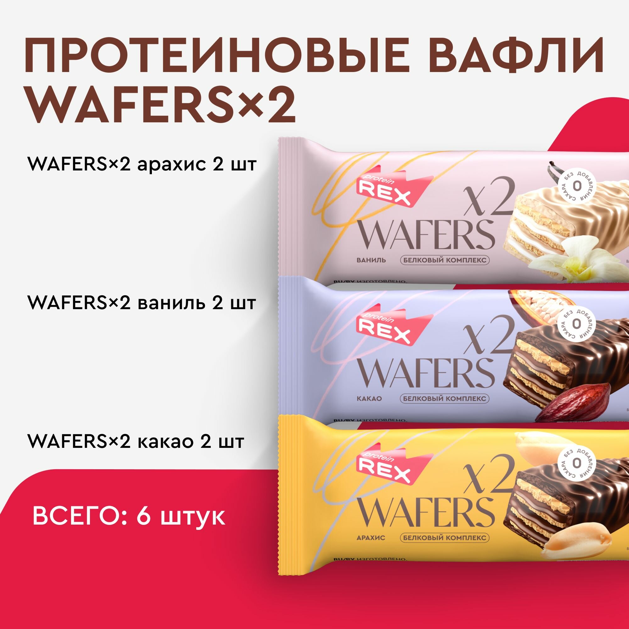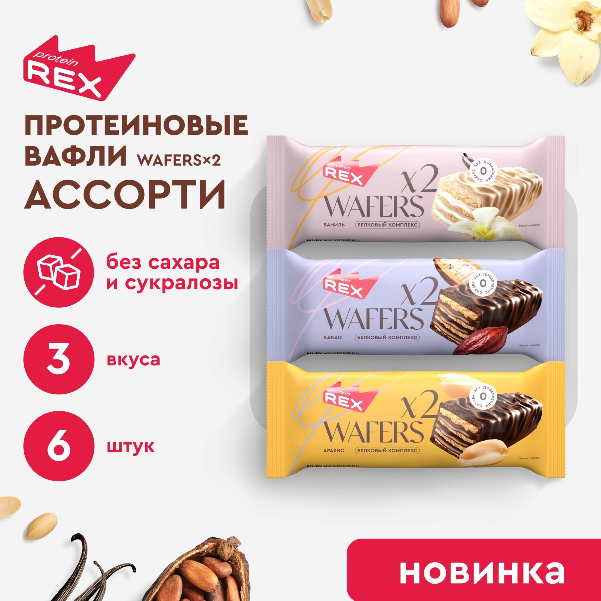 Купить ProteinRex Протеиновые вафли без сахара Ассорти WAFERS*2, 6 шт х 50 гр