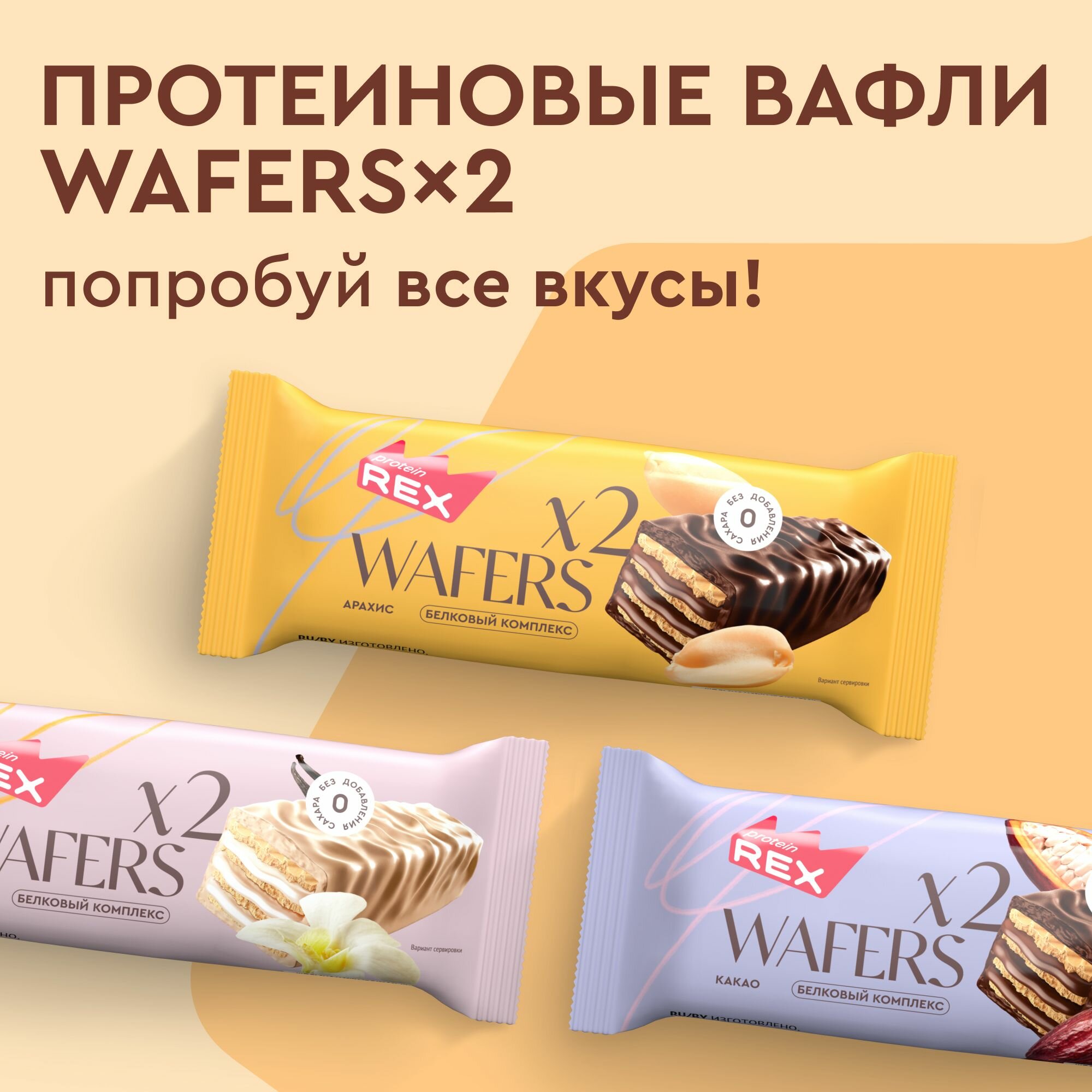 Купить ProteinRex Протеиновые вафли без сахара Арахис WAFERS*2, 12 шт х 50 гр