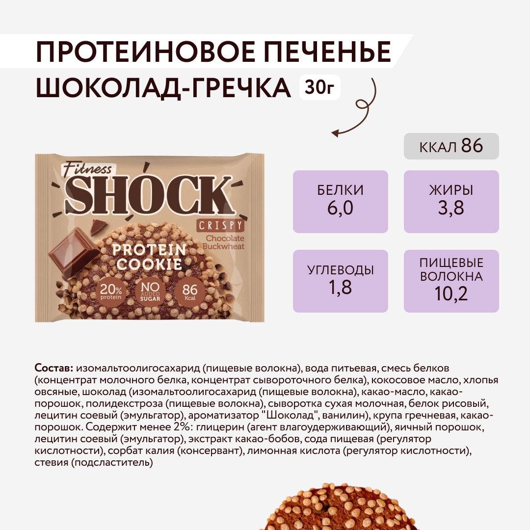 Протеиновое печенье без сахара Crispy ассорти все вкусы FitnesSHOCK, 30гр х 12шт интересное: