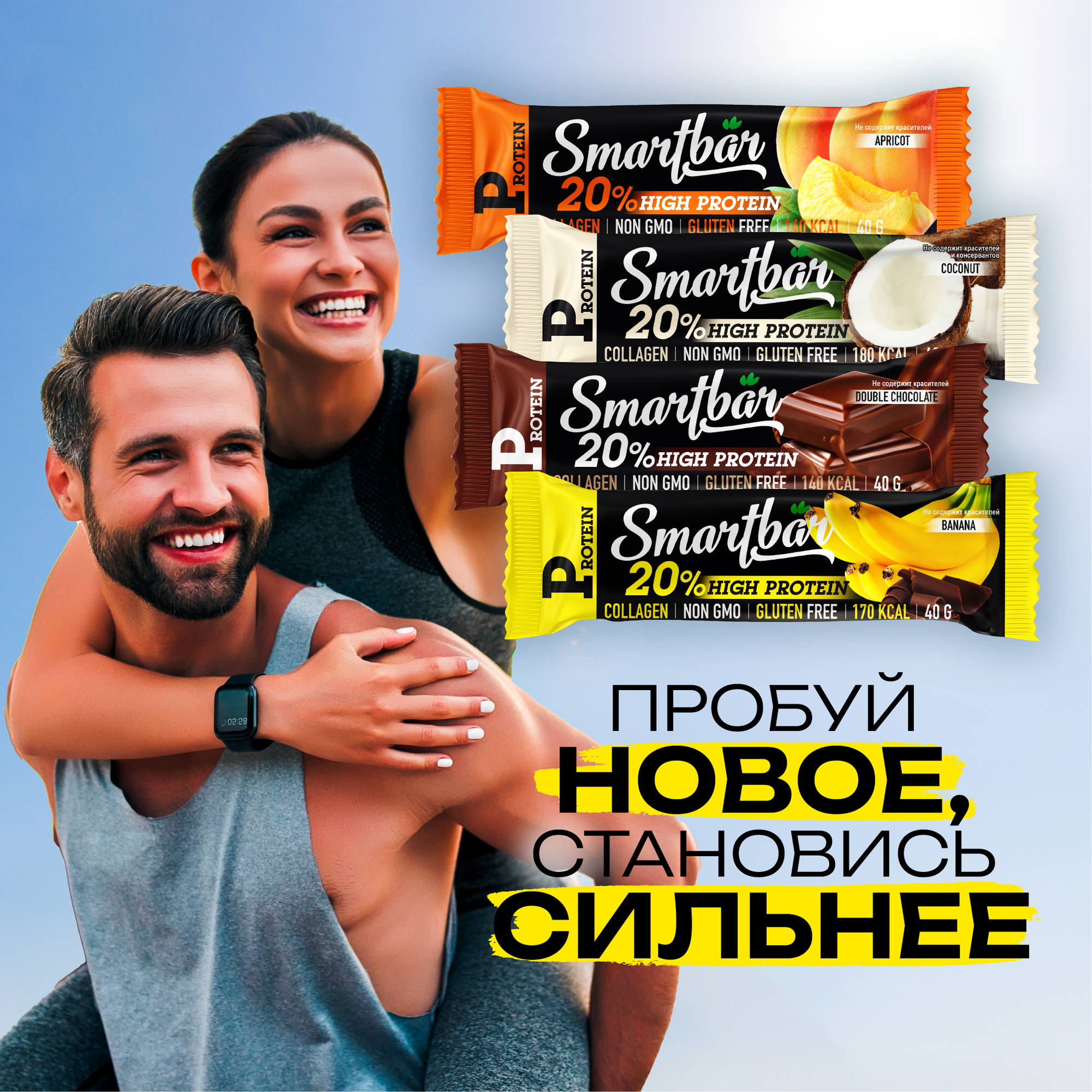 Протеиновые батончики SmartBar Protein 20 % Ассорти (Банан, Шоколад, Абрикос, Кокос) 40 г (8 шт.)
