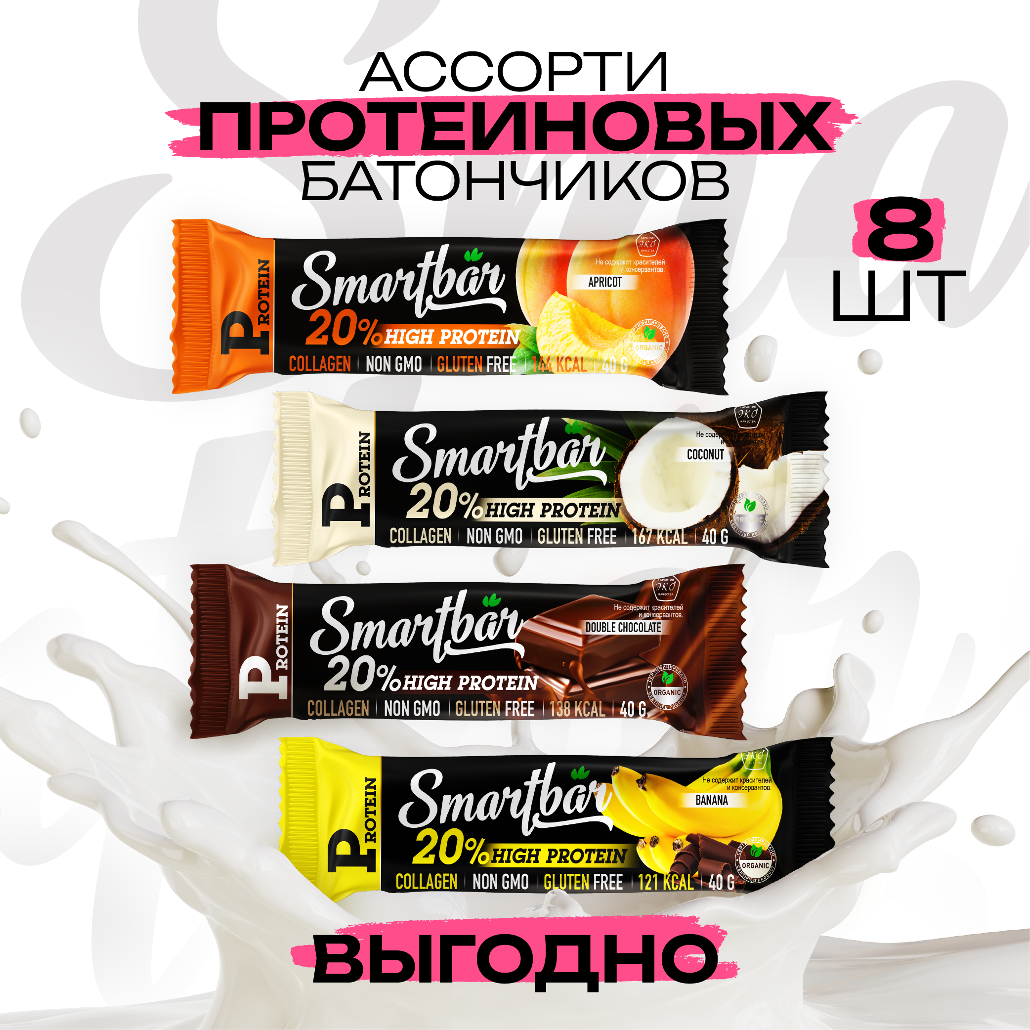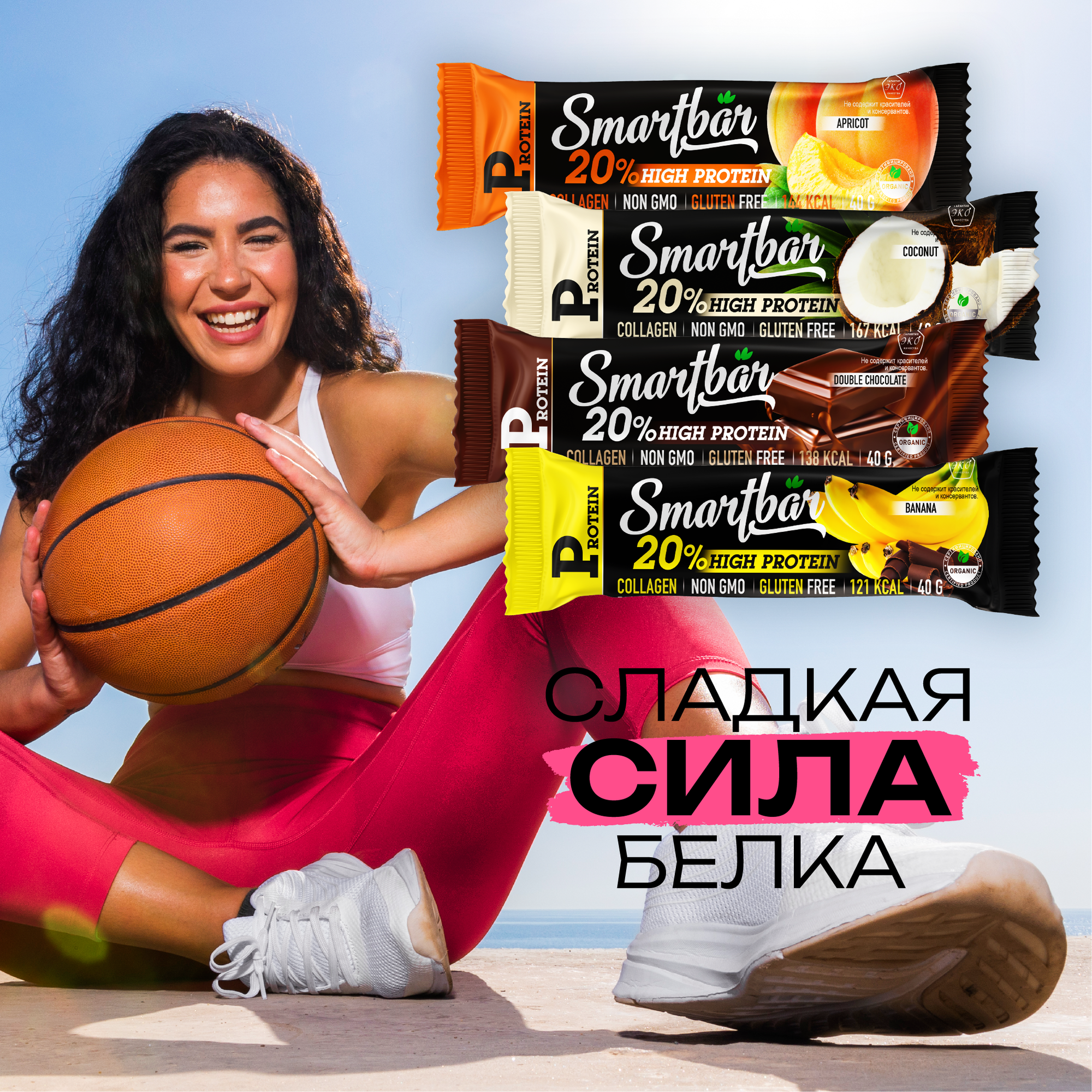 Купить Протеиновые батончики SmartBar Protein 20 % Ассорти (Банан, Шоколад, Абрикос, Кокос) 40 г (8 шт.)