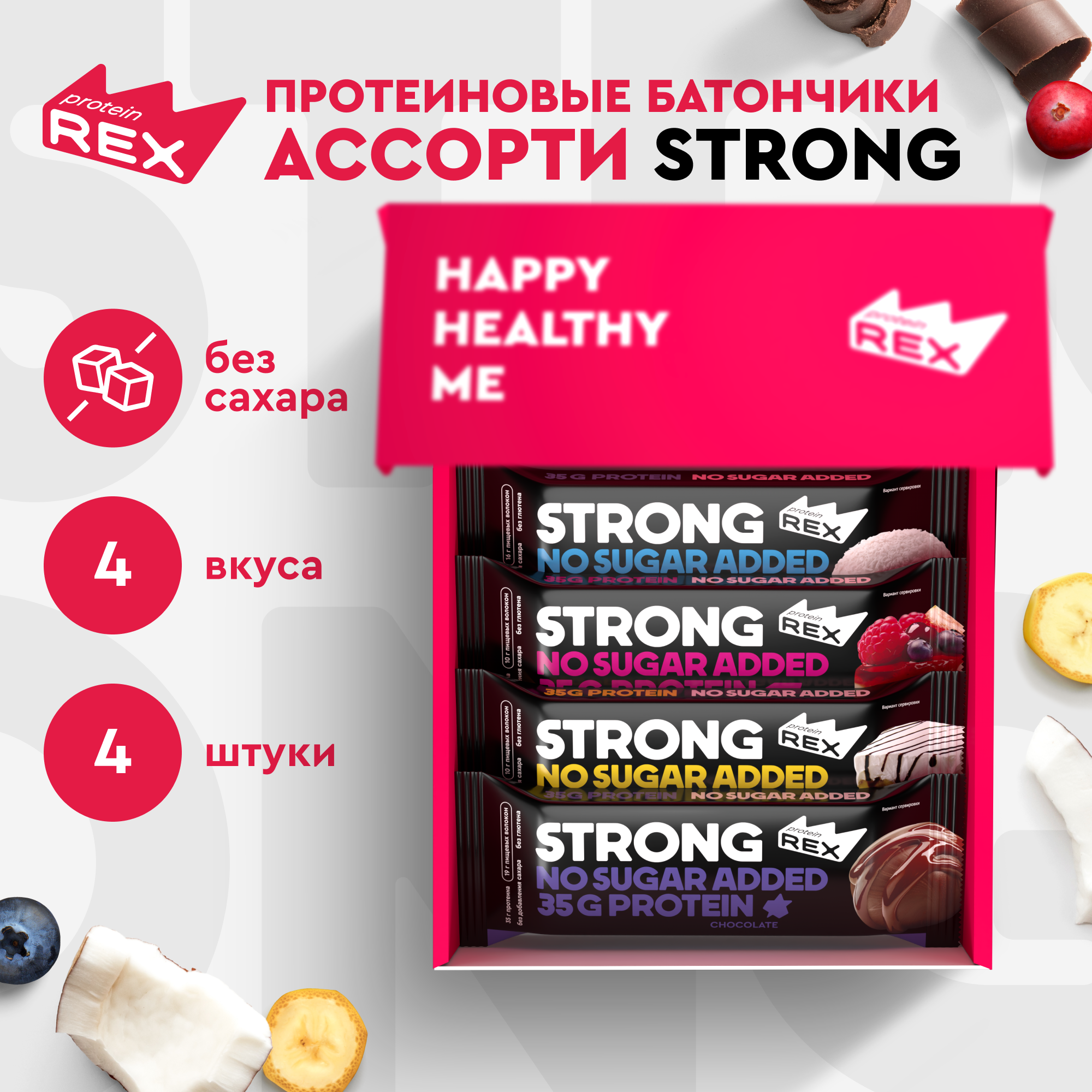 Купить ProteinRex Протеиновые батончики без сахара STRONG Ассорти, 4 шт х 100 г.
