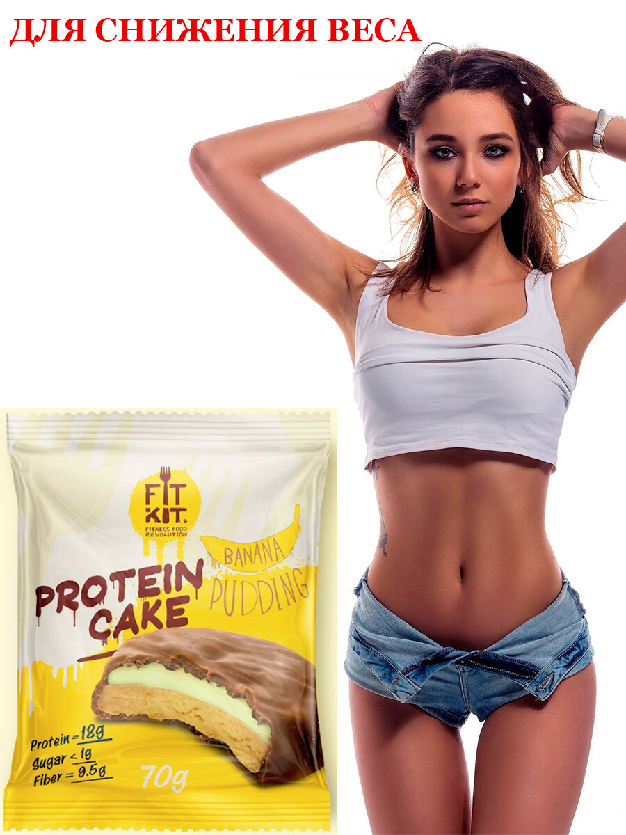 Купить FIT KIT Protein Cake в шоколадной глазури 70 г (24шт коробка) (Банановый пудинг)