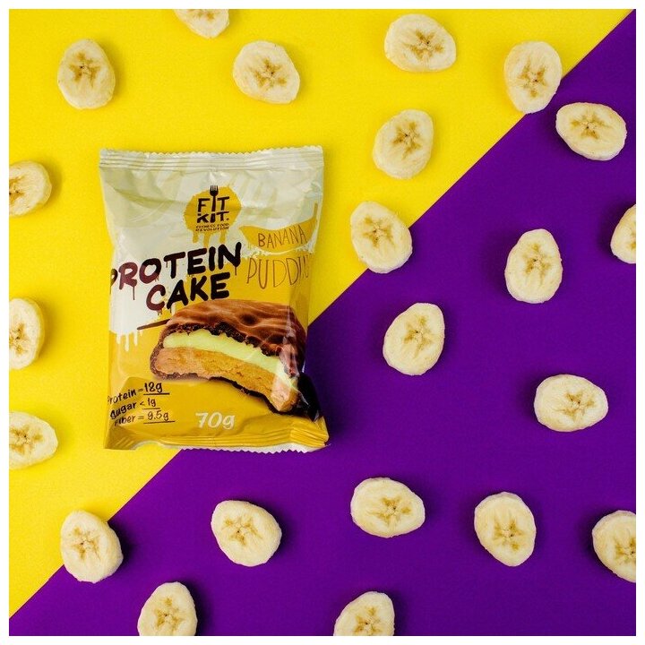 Протеиновое печенье FIT KIT Protein Cake, Банановый пудинг (24шт по 70г)