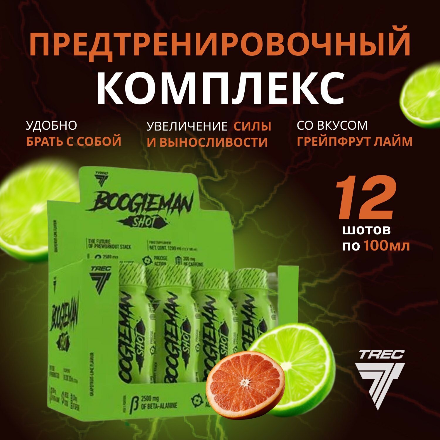 Купить Предтренировочный комплекс Boogieman fuel, 100 мл по 12 шт, грейпфрут-лайм