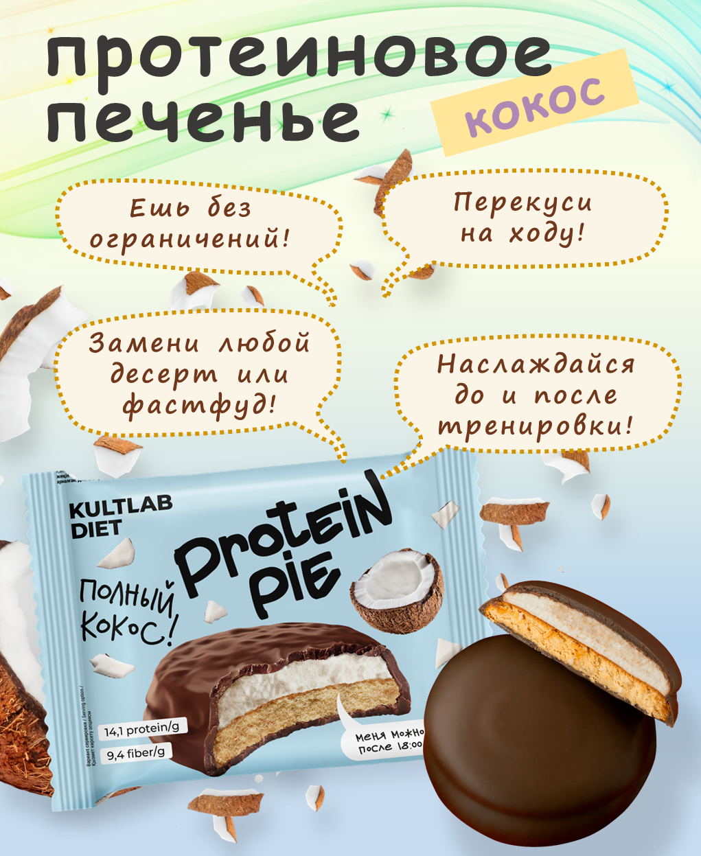 Купить Протеиновое печенье-суфле КультЛаб со вкусом Полный кокос, 8 штук